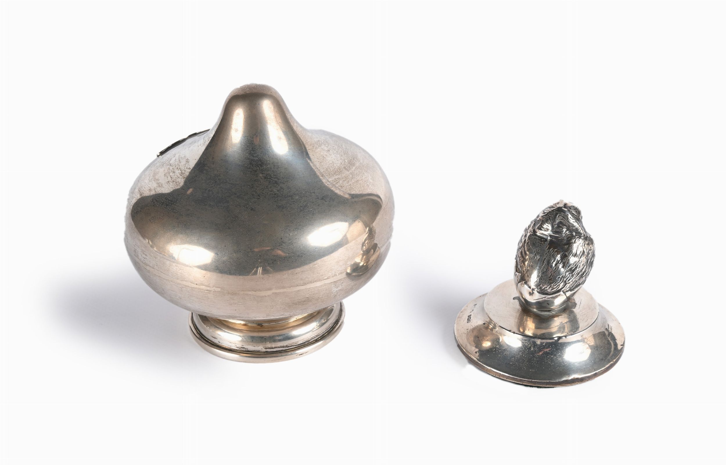 Salvadanaio in argento e fermacarte con pulcino, A. Barrett & Sons Piccadilly, Londra [..]