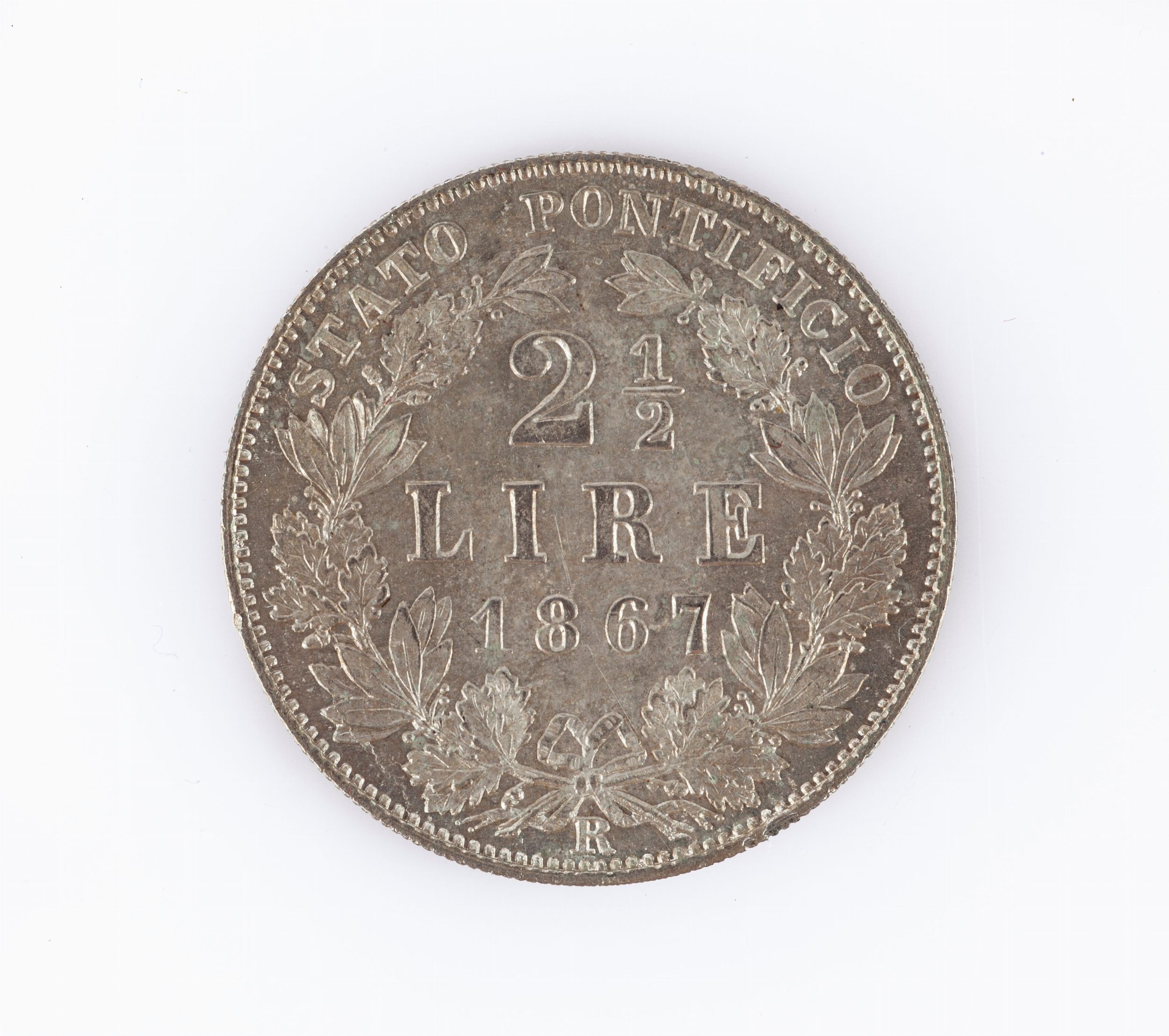 2 1/2 Lire A.XXI 1867 Roma Pio IX (1846-1878) Stato Pontificio