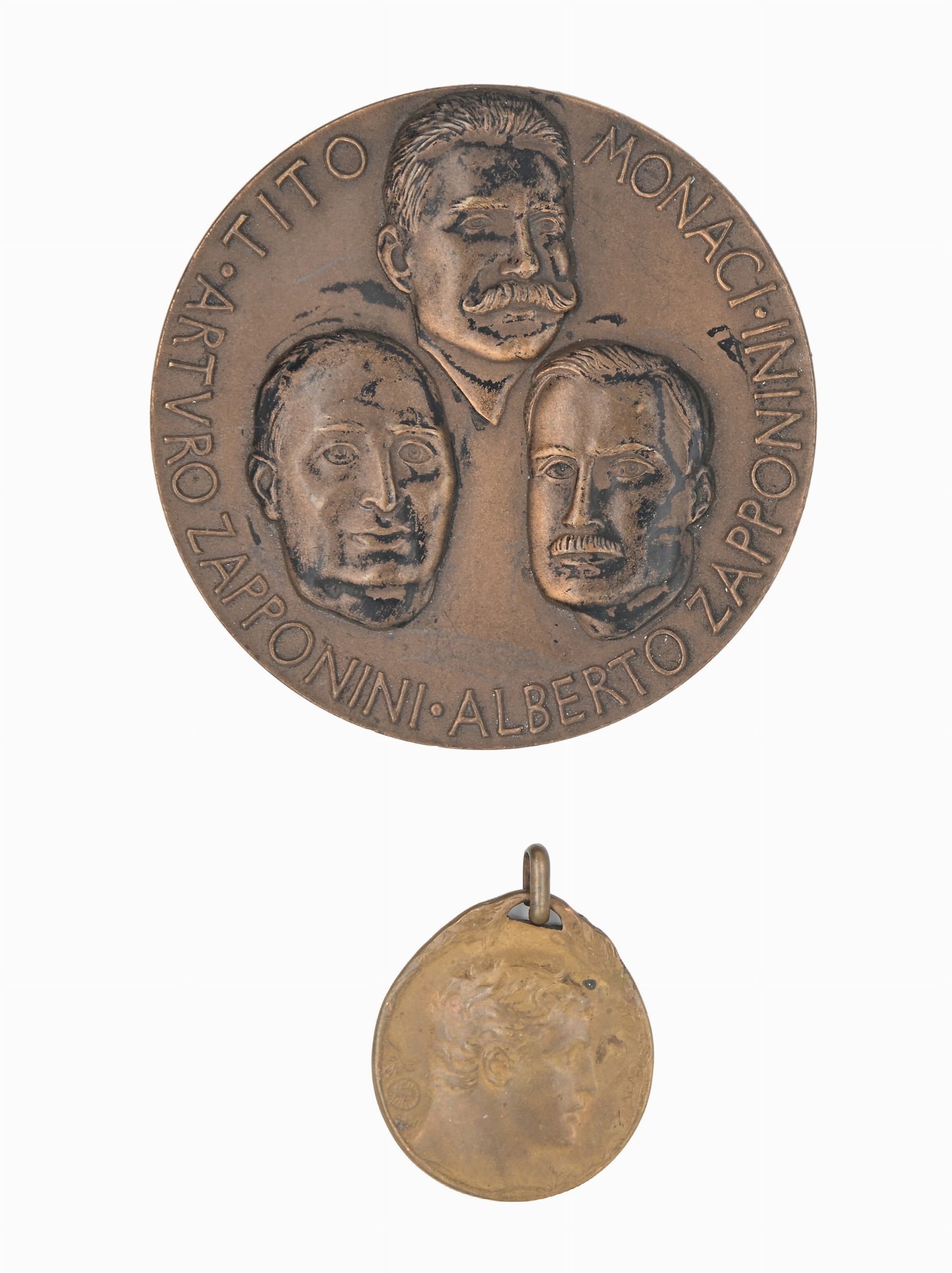 2 Medaglie in bronzo: Touring Club Italiano Decennale 1894-1904 - Centenario Guida [..]