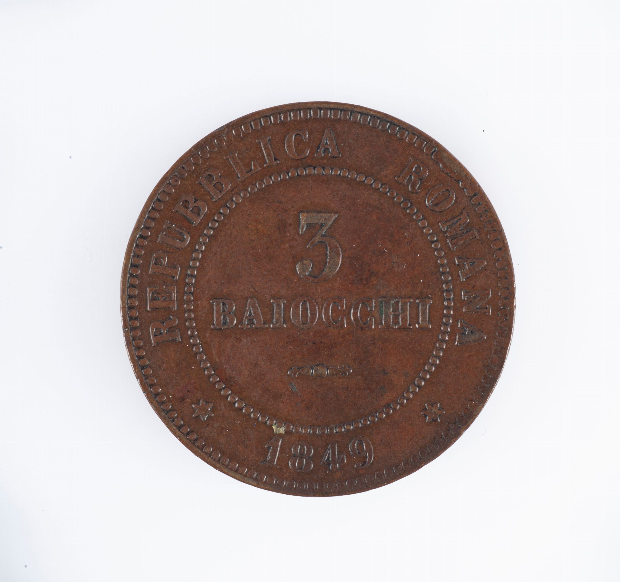 3 Bajocchi 1849 Roma Valore Piatto Seconda Repubblica Romana