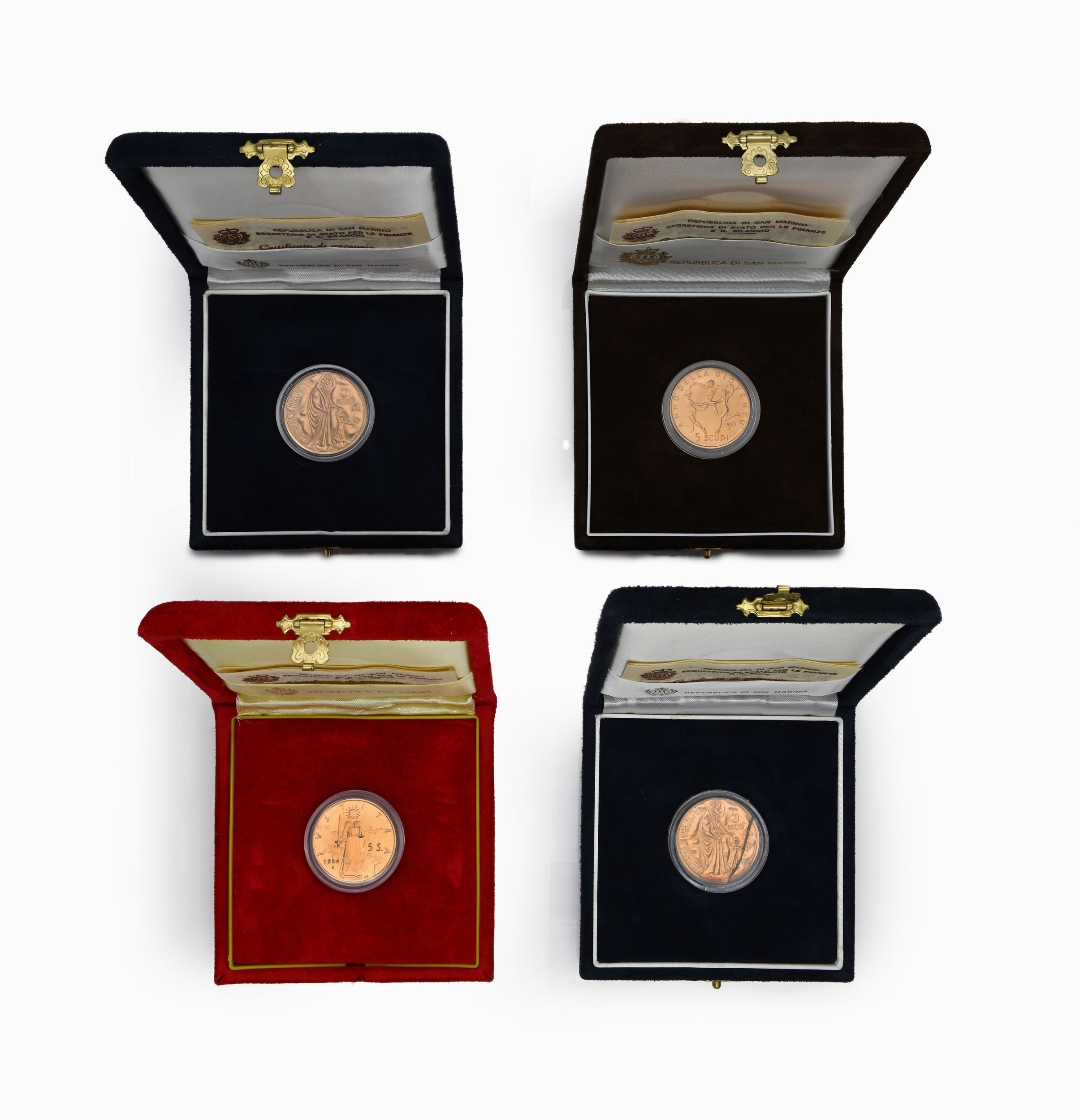 4 monete da 5 Scudi Repubblica di San Marino 1983 (2), 1984, 1985