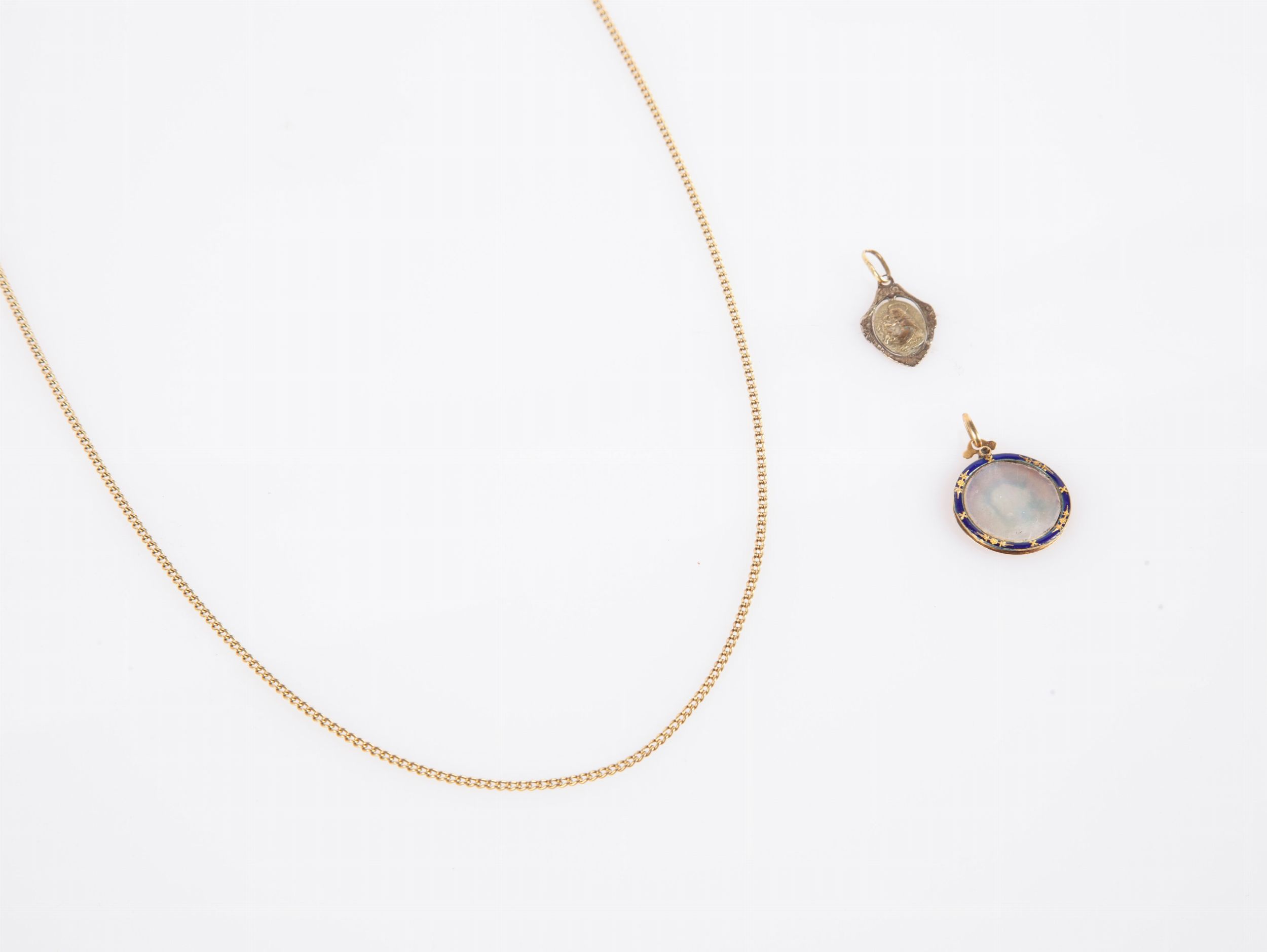 Catena con due ciondoli in oro a basso titolo