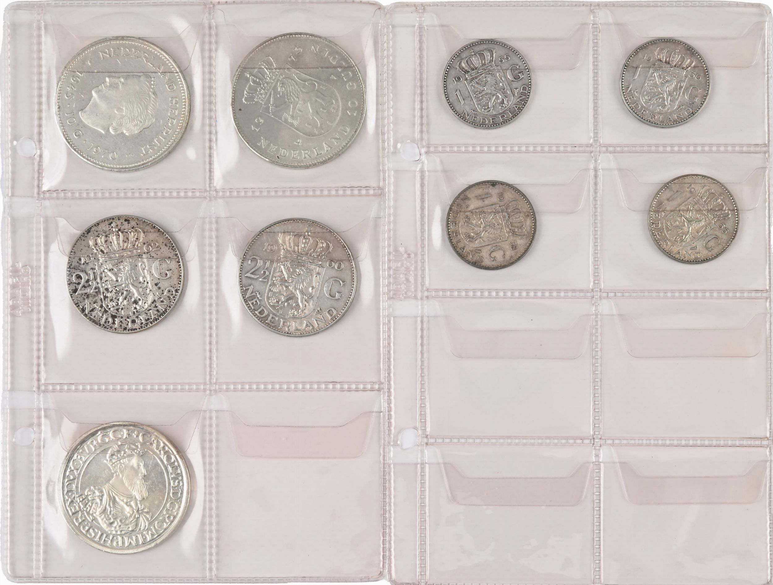 Lotto di monete: 5 Ecu 1987 Belgio; 10 Gulden 1970 e 1973, 2,5 Gulden 1960 e 1962, [..]