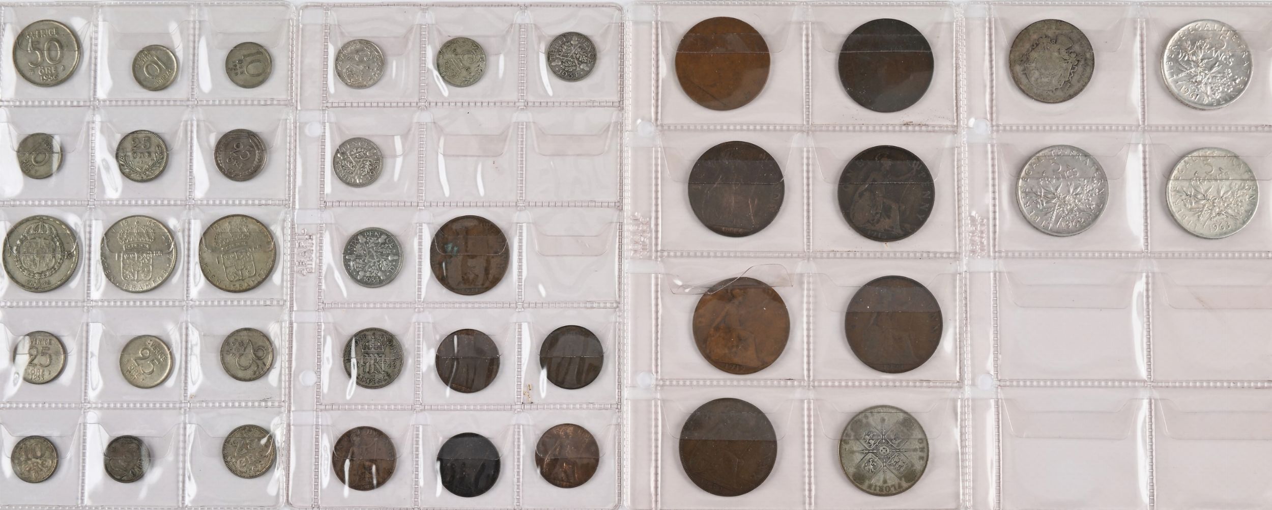 Lotto di monete in argento e metallo vile: Gran Bretagna; Francia; Svezia e Dani [..]