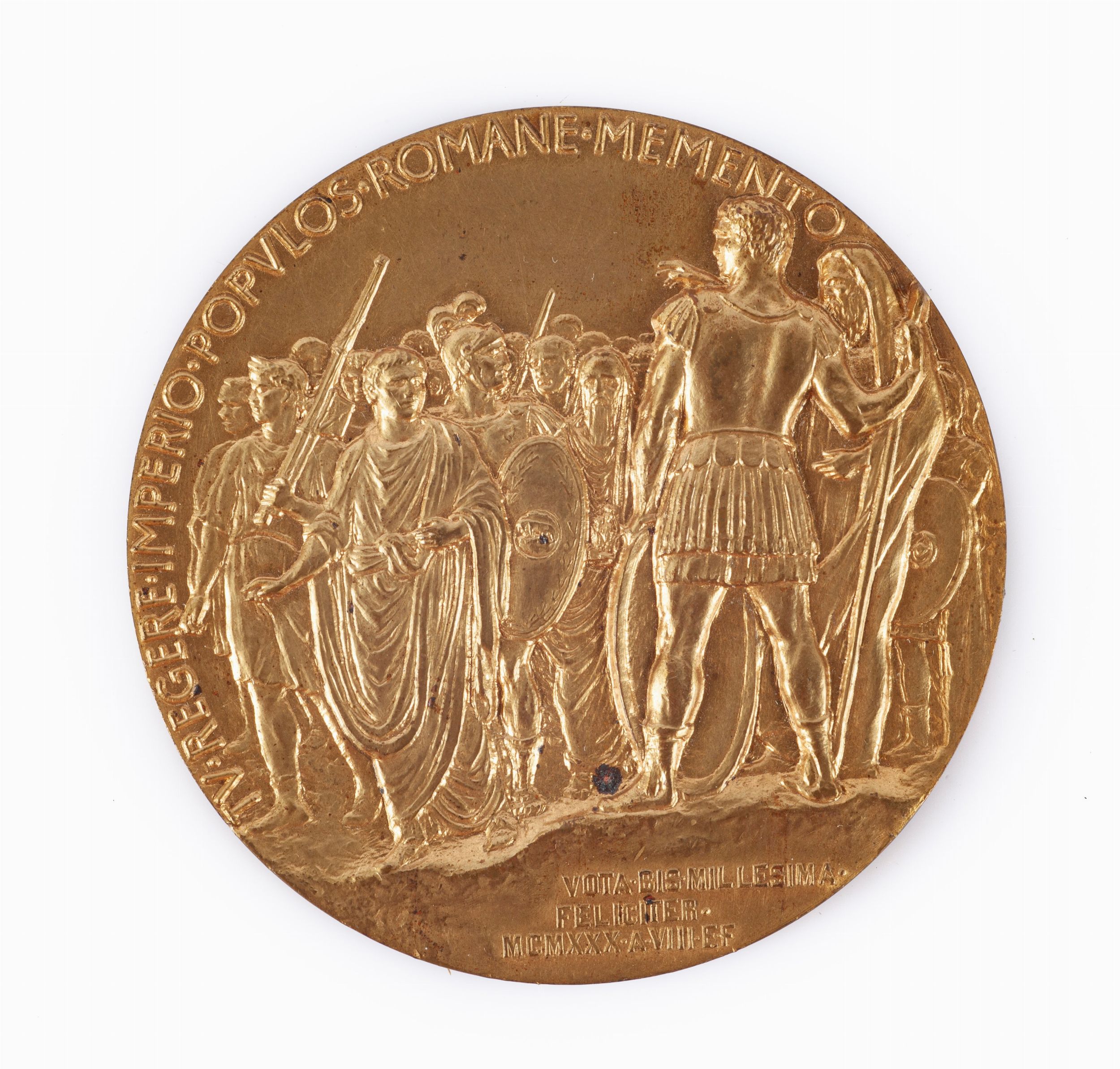Medaglia di bronzo dorato uniface 1930 - TU REGERE IMPERIO POPULOS ROMANE MEMENTO [..]