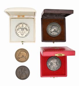 Metallo argentato, dorato e smaltato XX secolo Placca con nastrino e bottone. Entro astuccio originale Tanfani [..]