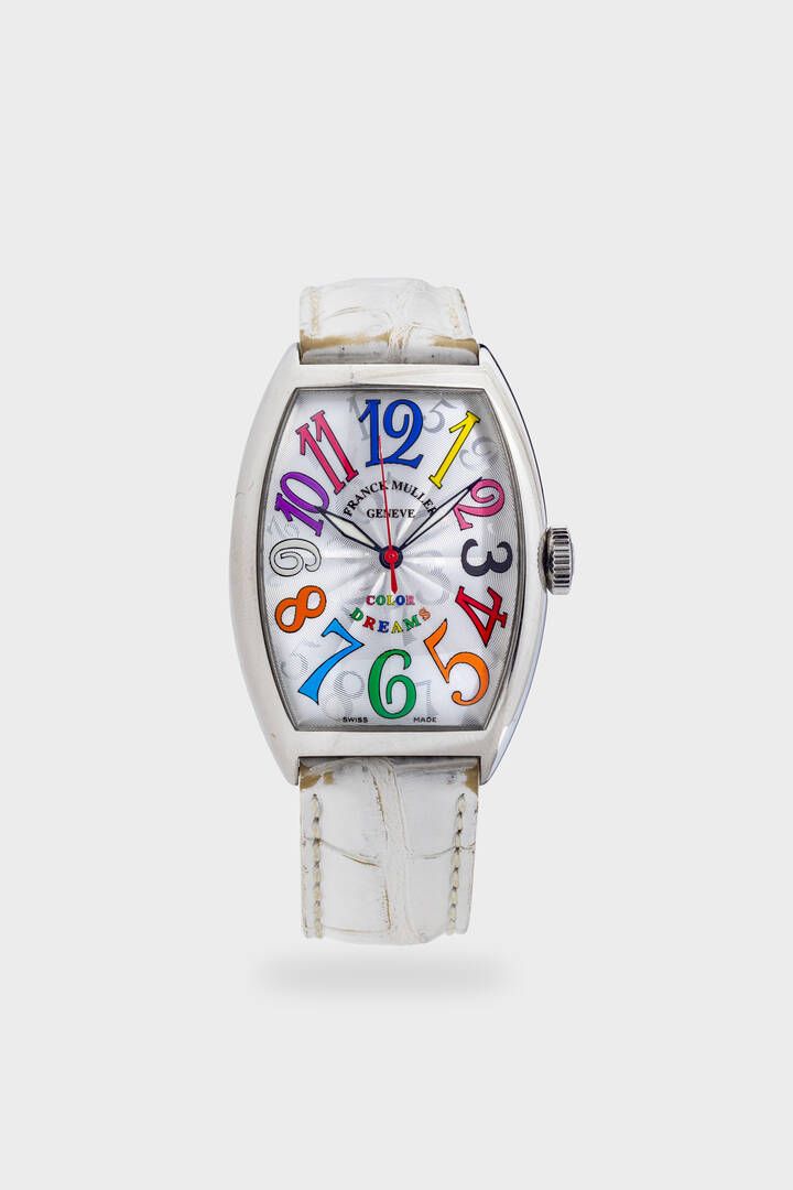 32x45 mm Cassa in acciaio curva di forma. Quadrante argento microlavorato con numeri arabi smaltati di vari colori ed indicazione centrale dei secondi continui. Movimento a carica automatica. Orologio full set unico proprietario. Presente garanzia italiana box in legno controscatola e pergamena di istruzione. Orologio facente parte di una serie limitata (N.1240)