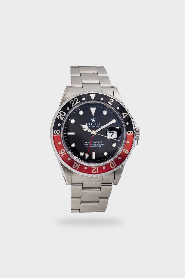 Diam. 40 mm Cassa in acciaio con lunetta girevole bidirezionale “Coke”. Quadrante nero con indici geometrici luminescenti applicati indicazione dei secondi continui al centro e datario al 3. Presente poi la lancetta del secondo fuso orario. Bracciale in acciaio Oyster ref.78360 con chiusura clasp. Movimento a carica automatica cal 3185. Orologio full set con corredo comprendente scatola controscatola garanzia libretti tag e 13 maglie del bracciale. Orologio in stato museale di conservazione.