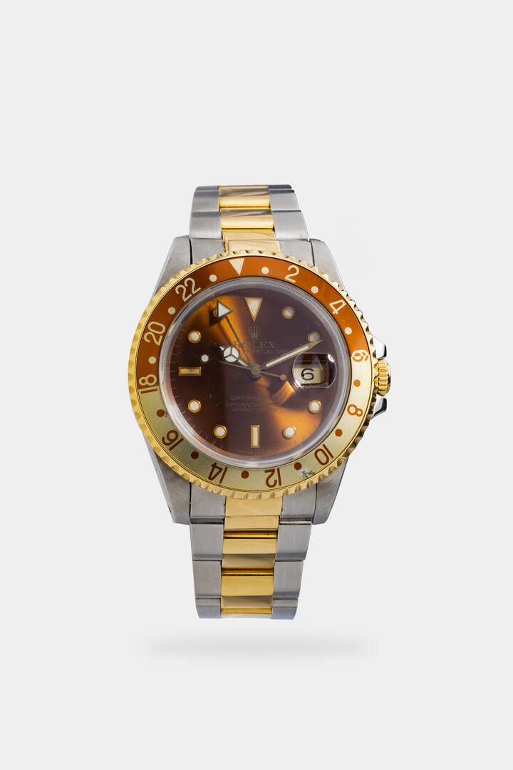 Diam. 40 mm Cassa in acciaio e oro con lunetta girevole bidirezionale. Quadrante occhio di tigre con indici geometrici luminescenti applicati indicazione dei secondi continui al centro e datario al 3. Presente poi la lancetta del secondo fuso orario. Bracciale in acciaio e oro Oyster ref.78393 con chiusura clasp. Movimento a carica automatica cal 3185. Orologio completo di garanzia dell'epoca ed in stato esemplare di conservazione.