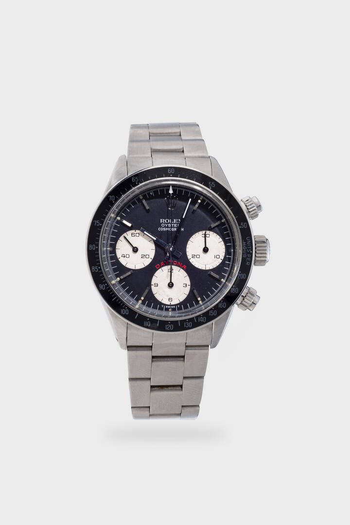 Diam. 37 5 mm Cassa Oyster in acciaio con fondello a vite e lunetta in bachelite. Quadrante nero Big Red con indici geometrici applicati; contatore dei secondi continui al 9 delle 12 ore al 6 e dei 30 minuti cronografici al 3. Bracciale Oyster in acciaio con chiusura clasp. Movimento a carica automatica cal.727