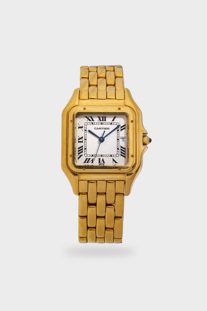 30x40 mm Cassa in oro di forma con fondello avvitato. Quadrante argento con numeri romani serigrafati e datario al 3. Bracciale in oro integrato con chiusura a scomparsa. Movimento al quarzo. Orologio completo di garanzia e libretti dell'epoca.