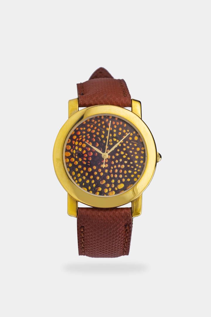 Diam. 34 mm Cassa placcata con fondello a vite. Quadrante decorato con opera dell'artista Luigi Mainolfi. Eseguito nel 1994 a cura della Il tempo e l'arte in tiratura limitata a 1000 esemplari per orologio. Corredato di scatola garanzia e certificato notarile che ne attesta la limitata produzione.