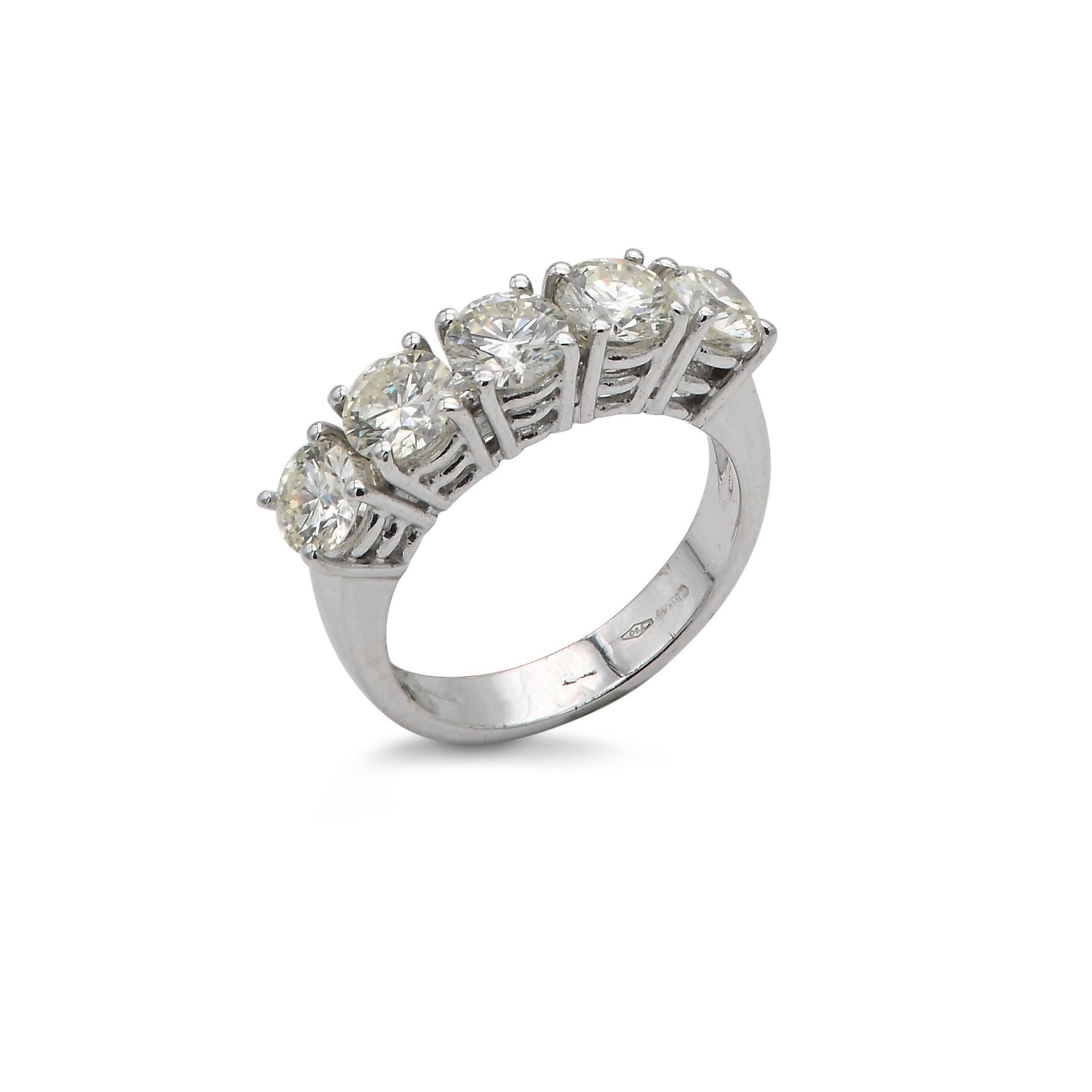 Oro bianco 750/000. Diamanti in taglio rotondo brillante ct. 2,60, prob H-I, VS. Peso complessivo gr. 6,50.