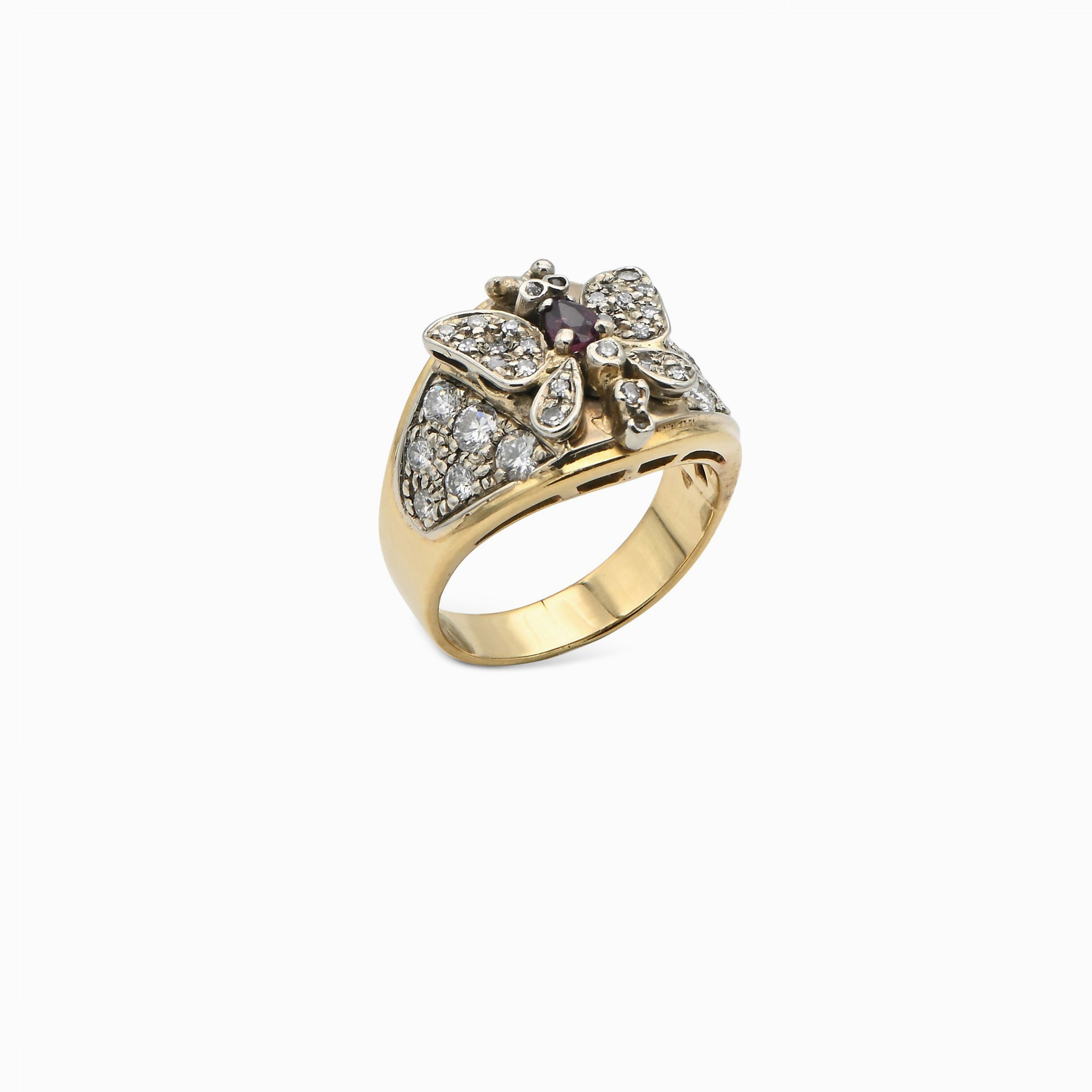 Anello in oro, brillanti e rubino