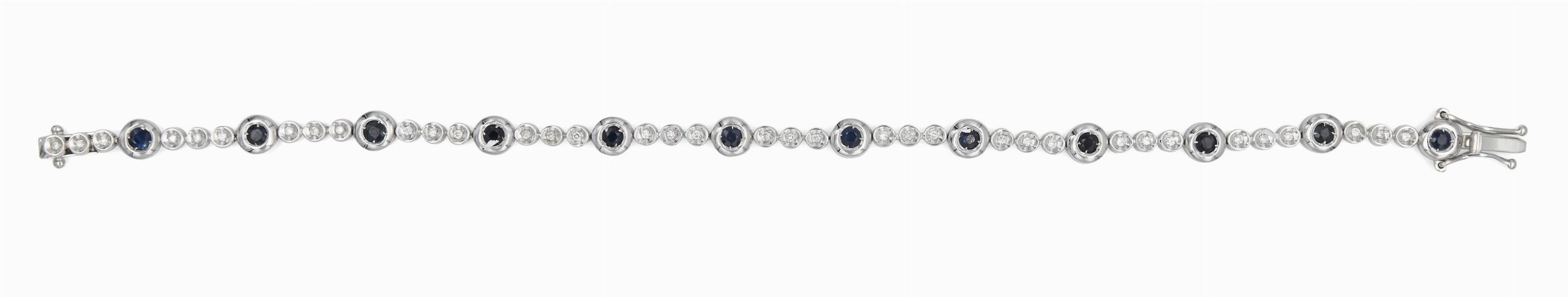 Bracciale tennis in oro bianco, brillanti e zaffiri