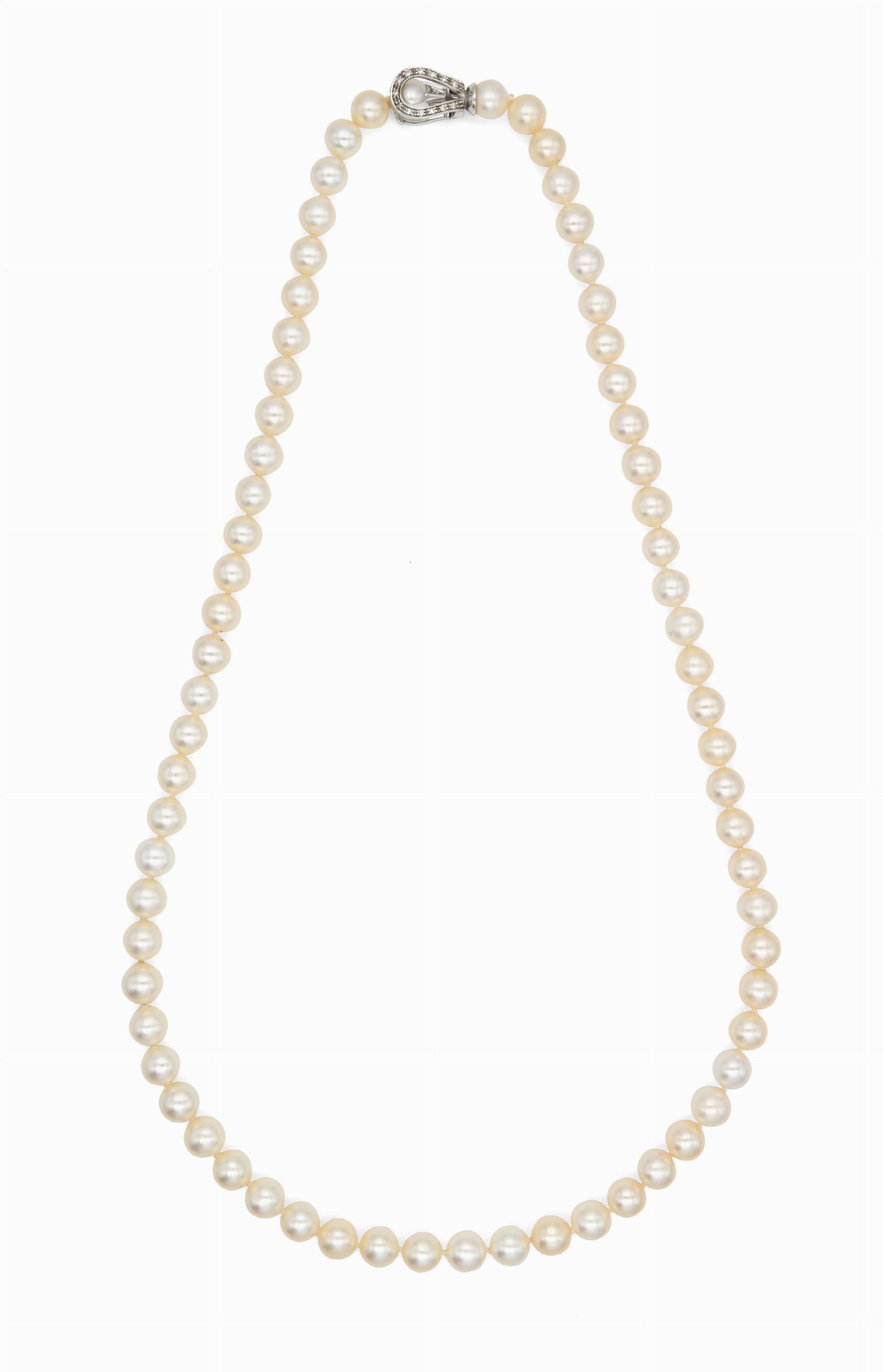 Oro bianco 750/000. Diamanti, perle da coltivazione in acqua marina mm. 7