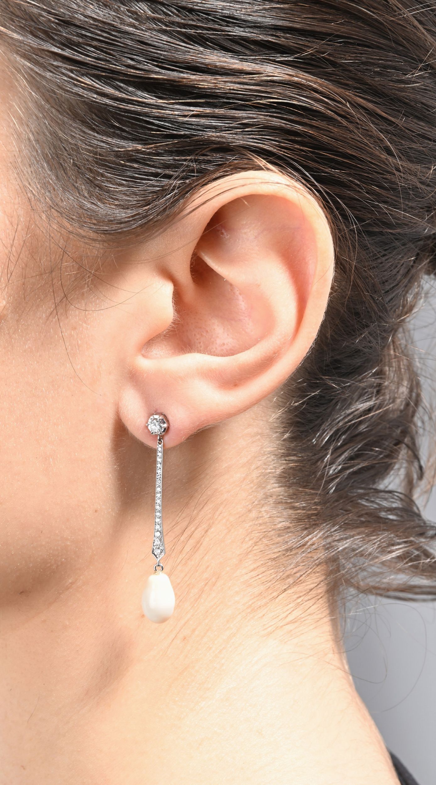 Coppia di orecchini pendenti in oro, brillanti e perle Quahog