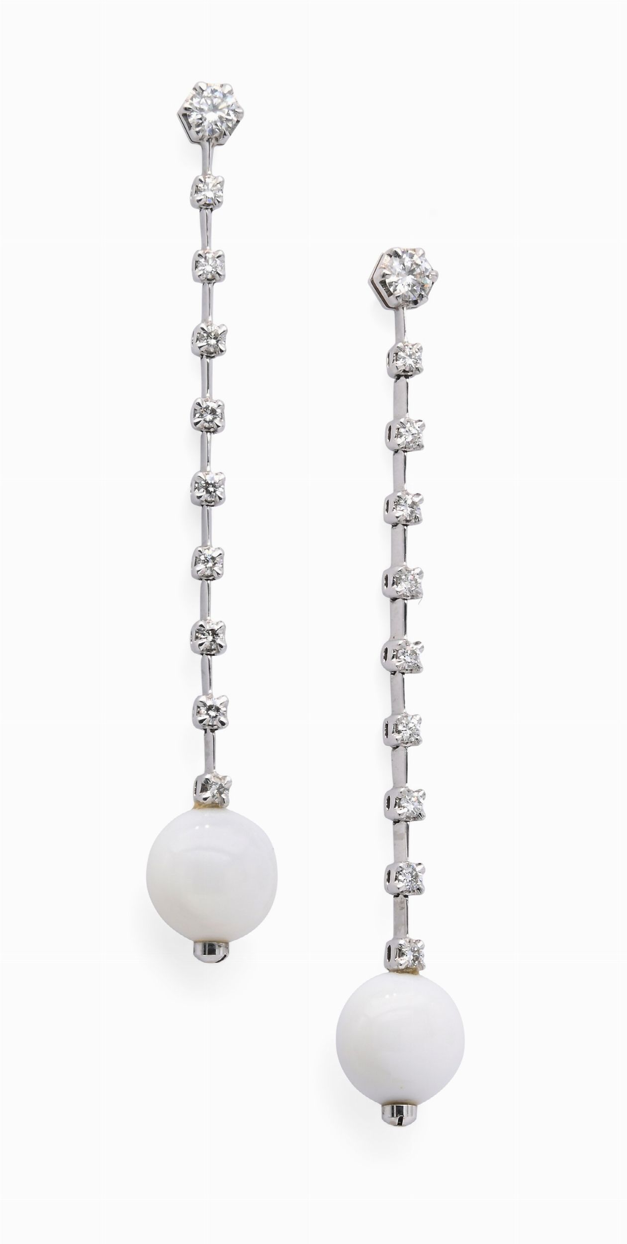 Coppia di orecchini pendenti in oro, perle Clam e brillanti