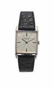 mm. 26 x mm. 26 Oro bianco 750/000. Cassa n° 79470043, fondello a scatto. Quadrante argentato, indici applicati, [..]