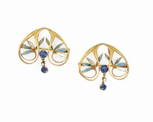 cm 3 x 3,5 Oro giallo 750/000. Peso complessivo gr. 11,80.  Firmate sul retro e numerate B-1180-B e B-2058-B.  [..]