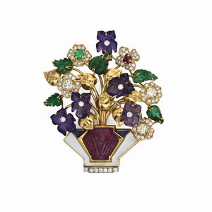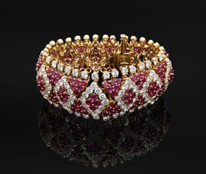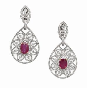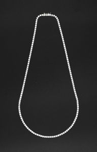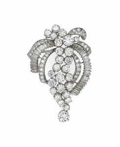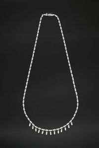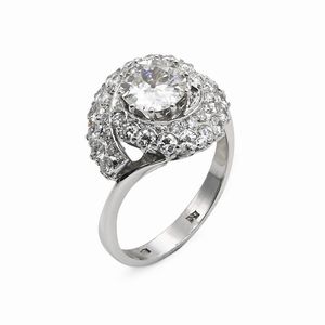 cm 7 x 4 Oro bianco 750/000. Diamanti in taglio rotondo brillante ct. 5, 2 diamanti in taglio ovale ct. [..]