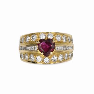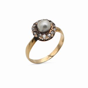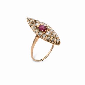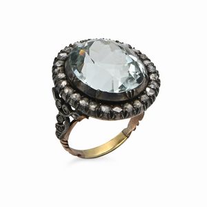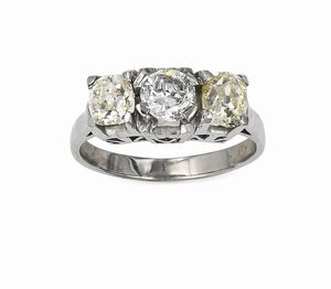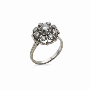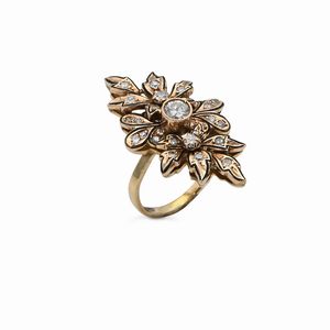 Misura 12 Oro giallo 750/000. Smeraldo ct. 2 ca. Diamanti in taglio rotondo brillante ct. 0,70 ca. Peso complessivo [..]