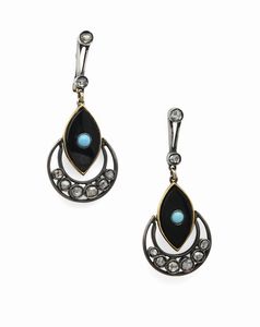 Bracciale lunghezza cm 18, orecchini cm 2,50 x 1,50 Oro giallo 750/000, turchese in taglio cabochon, diamanti [..]