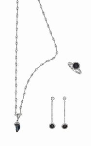 Lunghezza collana cm 40; orecchini lunghezza cm 5; anello misura 13 Oro bianco 750/000. Perle naturali spontanee [..]