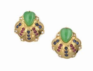 cm 10 x 4 Oro giallo 750/000, perla golden, rubini, zaffiri, smeraldi e brillanti. Peso complessivo gr. 53,20.