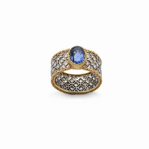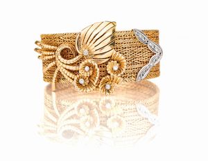 Misura 17 Oro giallo e bianco 750/000. Diamanti in taglio vecchia Europa ct. 1,50 ca. Peso complessivo gr 8. Mancante [..]