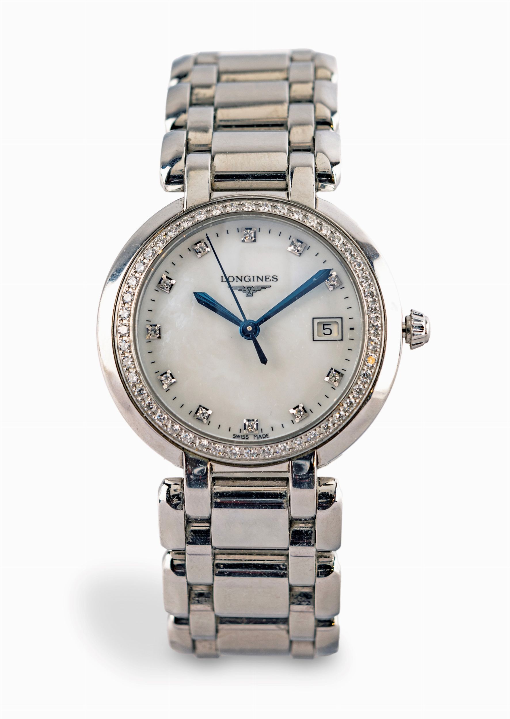 Longines Prima Luna, orologio da polso da donna in acciaio e diamanti