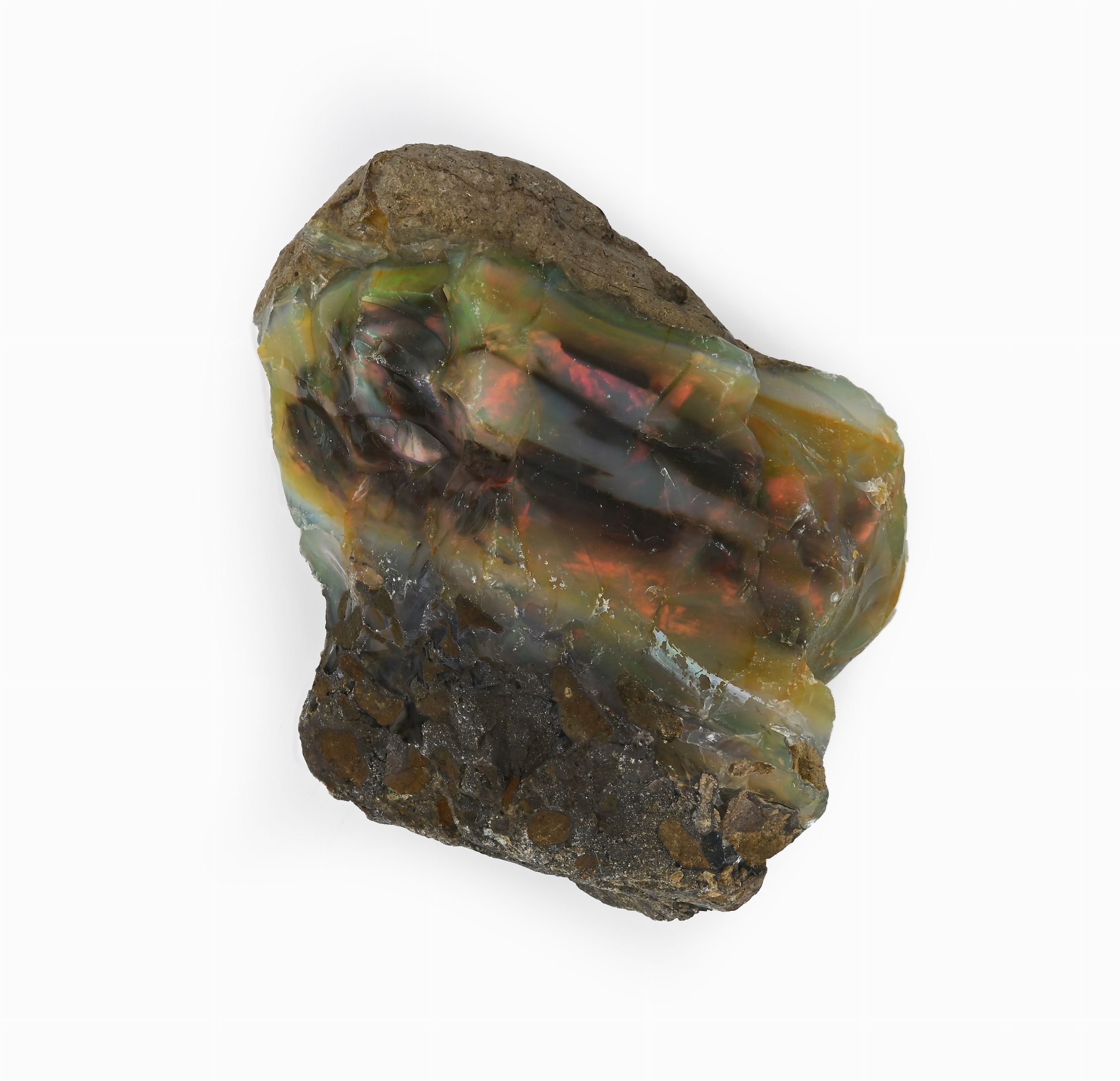 Opale naturale con matrice ct. 3790. Dotato di arlecchinamento. Corredato di certificazione gemmologica.