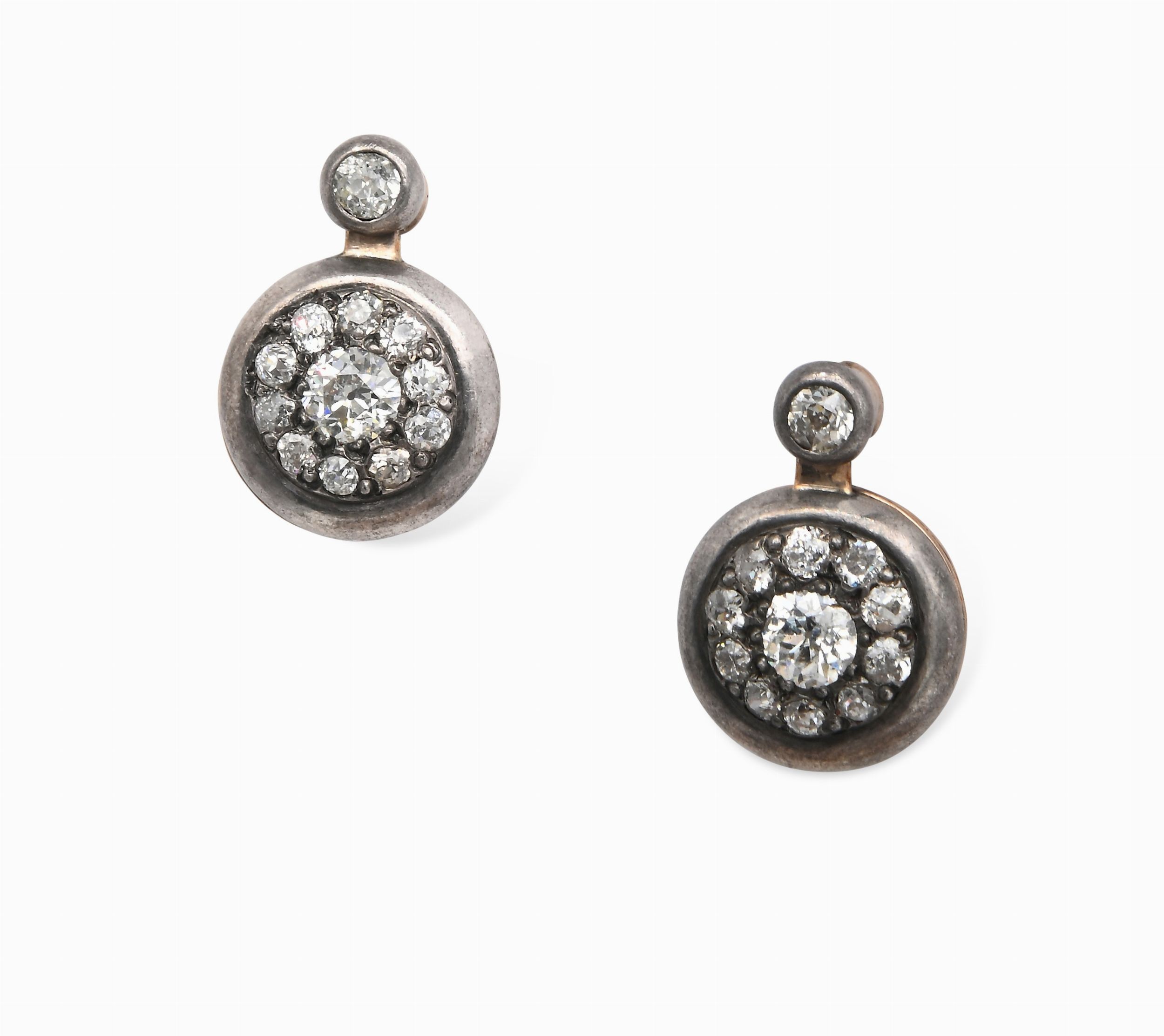 Orecchini a monachina antichi in oro e argento e diamanti