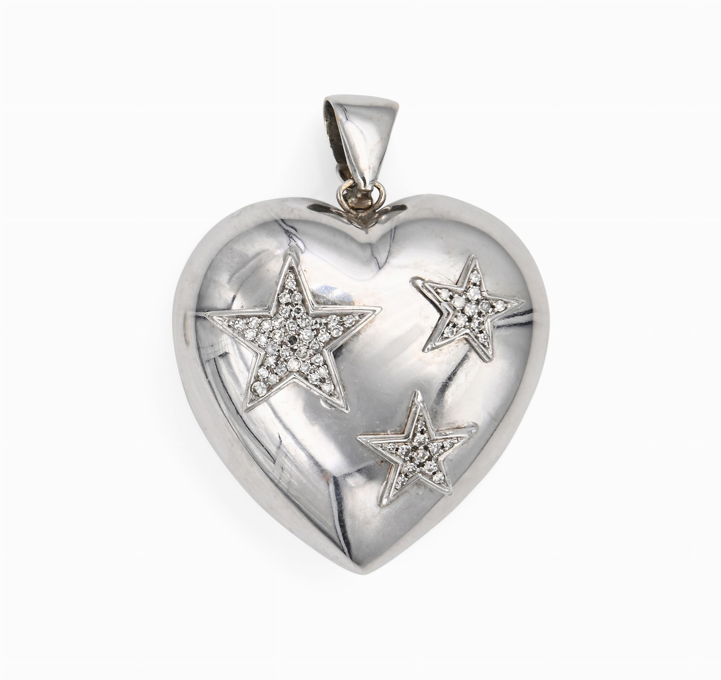 Oro bianco 750/000. Diamanti in taglio rotondo brillante. Contromaglia apribile. Presenta piccoli difetti. Peso complessivo gr. 20,20