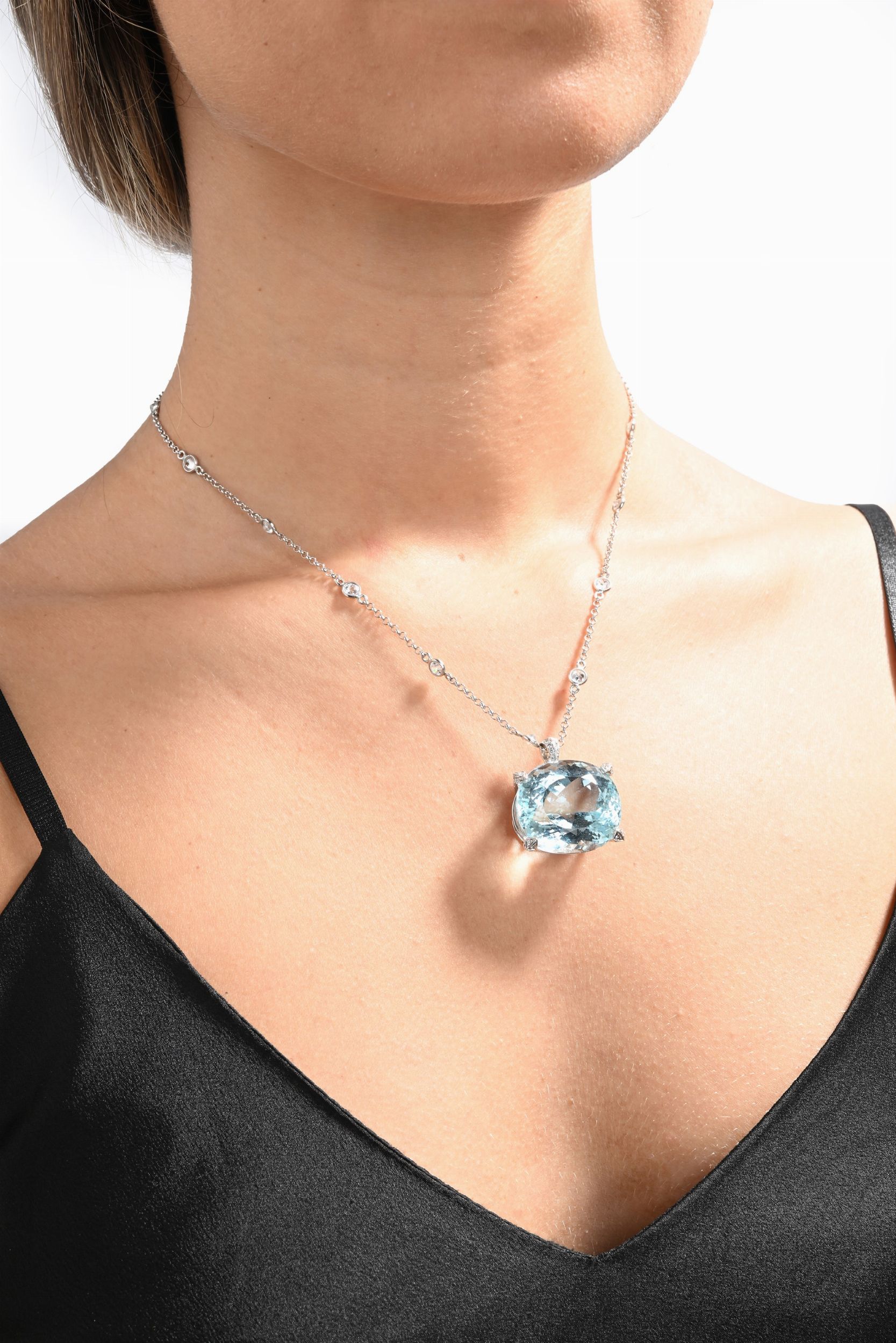 Pendente in oro, acquamarina e brillanti, con catena in argento e pietre incolor [..]