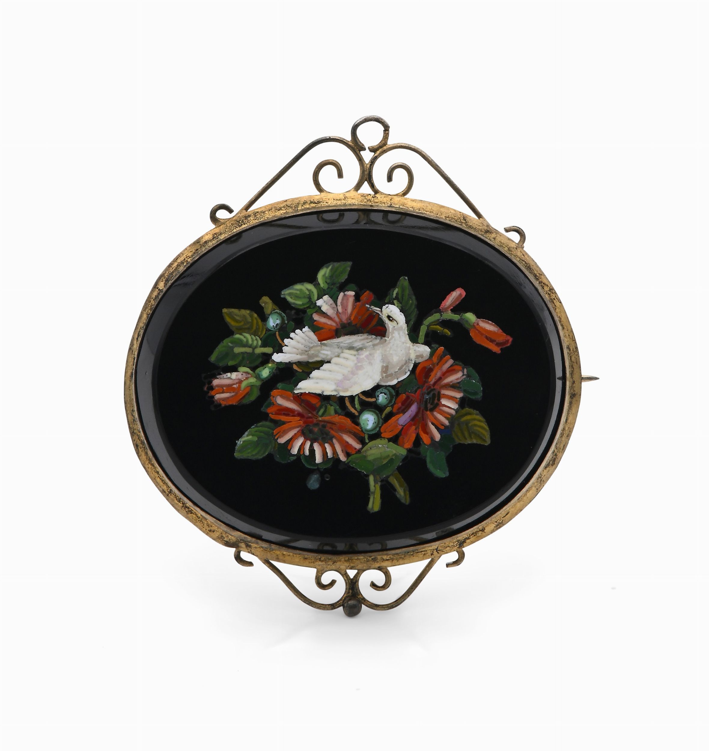 Spilla antica in metallo e micromosaico