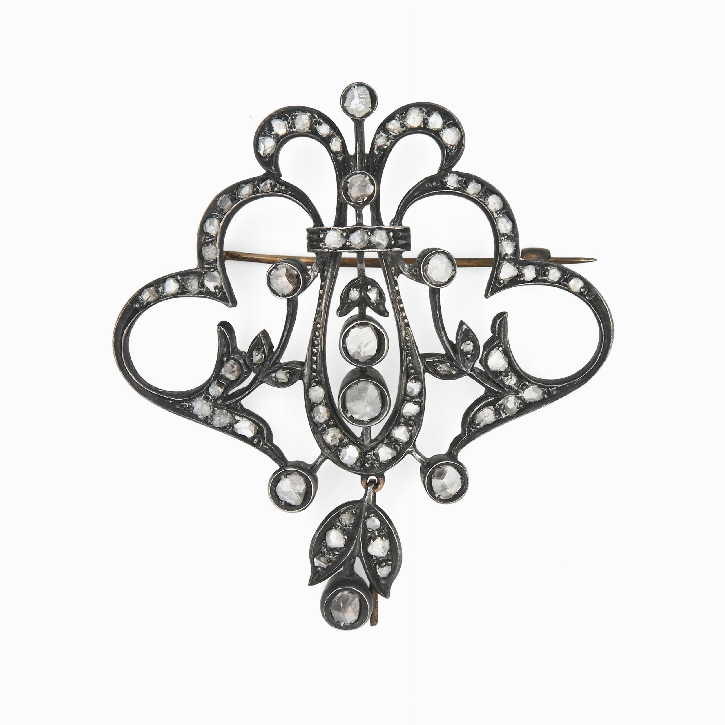 Spilla art nouveau in oro e argento, diamanti in taglio rosa