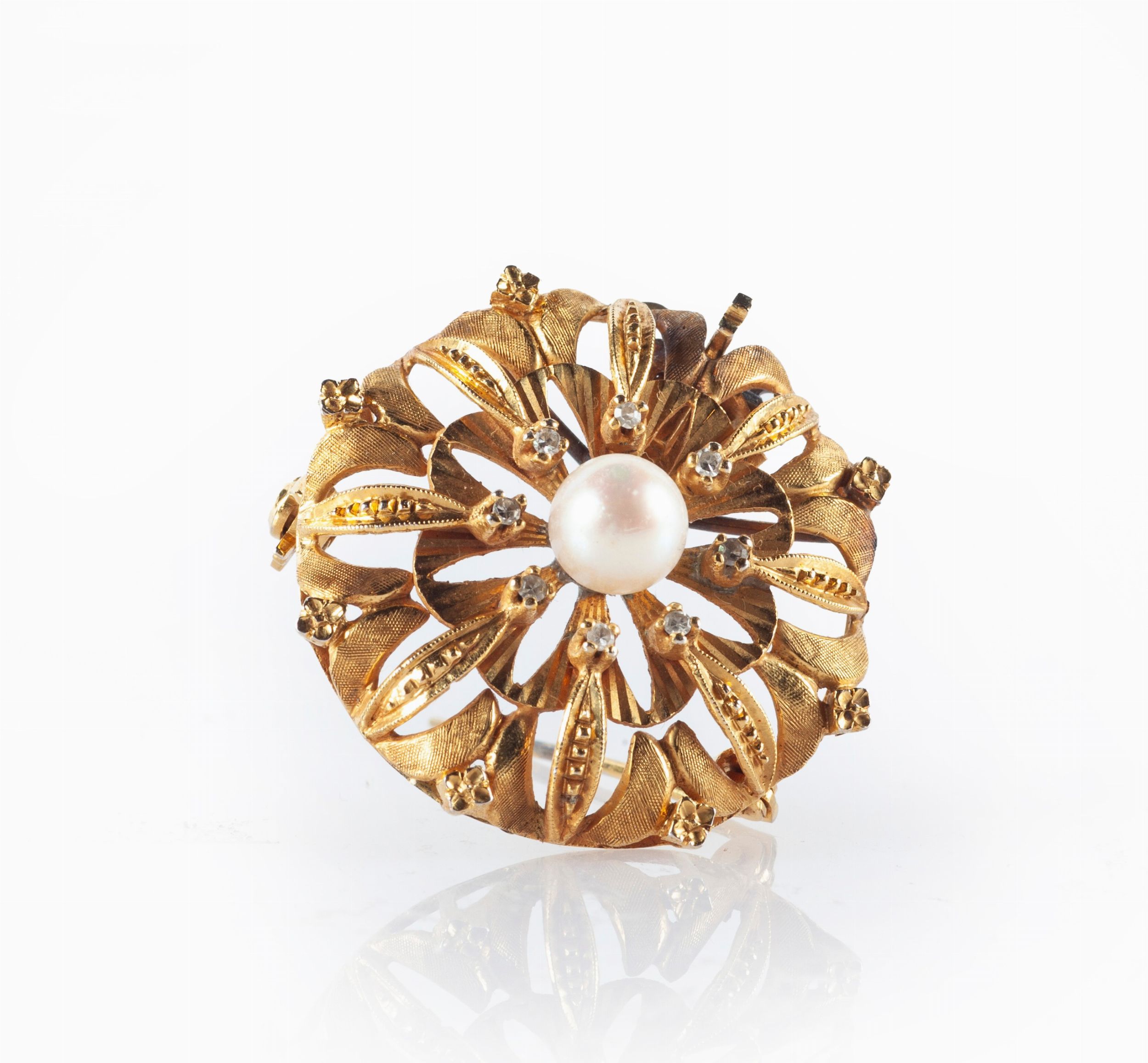 Spilla tonda in oro e perle