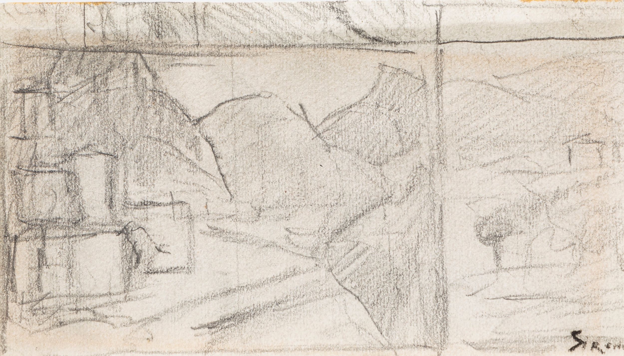 a. 1926 ca., matita e tracce di matita grassa su carta Firma apocrifa in basso a destra: Sironi b. matita e matita grassa su carta