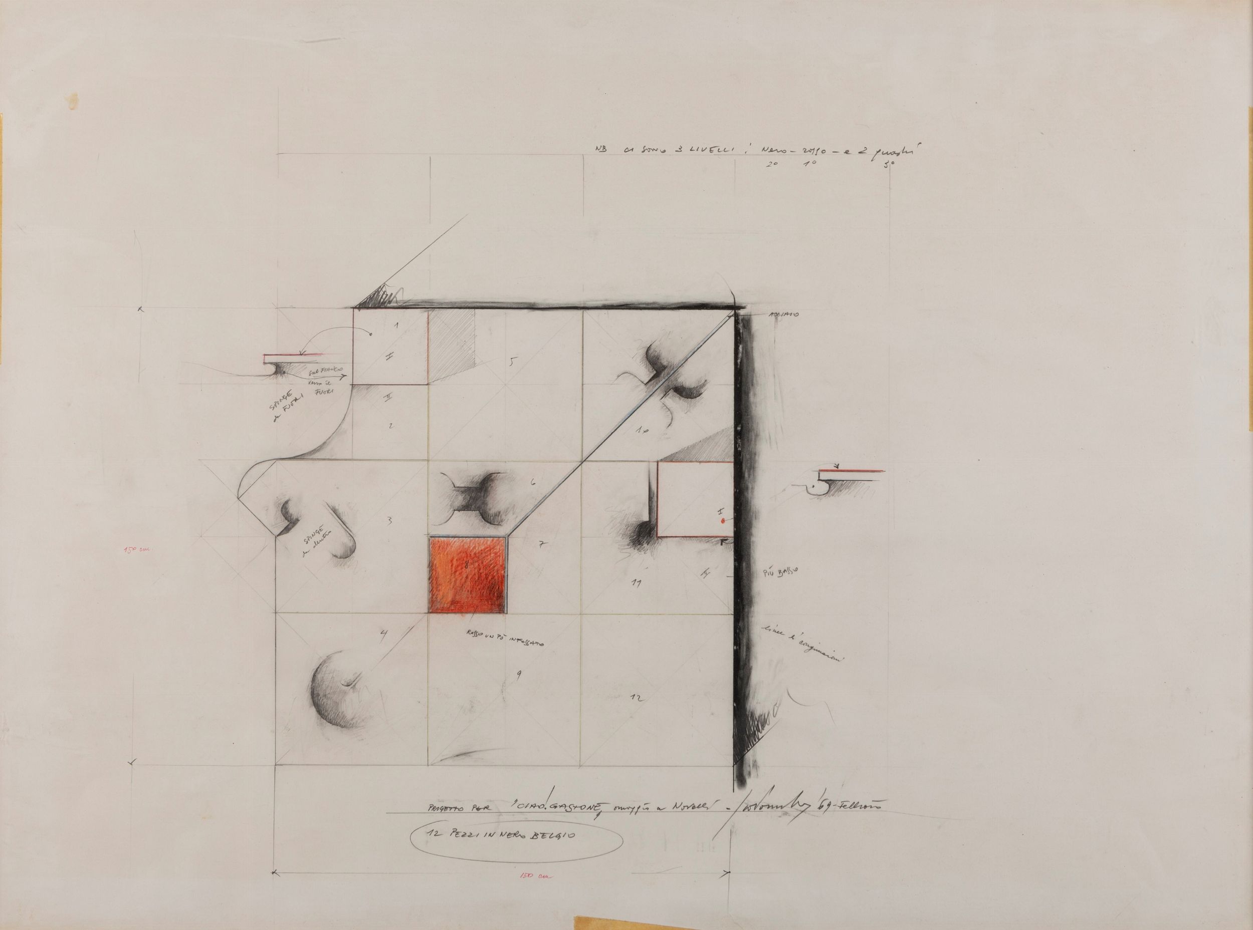 1969 Titolato, firmato e datato in basso al centro: Progetto per 'ciao! Gastone' omaggio a Novelli Giò Pomodoro 69
