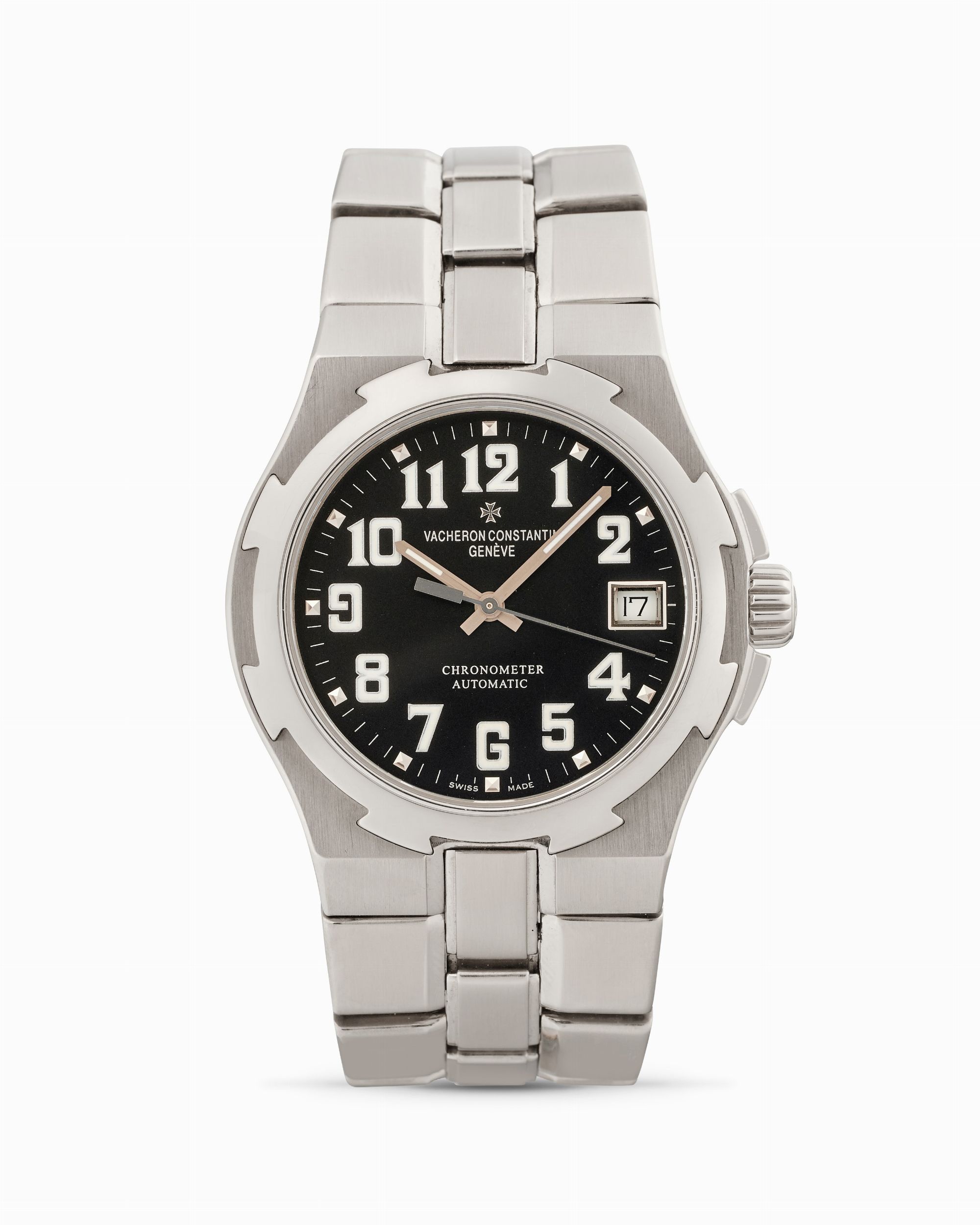 anni 2000 Cassa ottagonale in acciaio, n.730618, lunetta tonda in acciaio a Croce di Malta stilizzata, fondello a vite con medaglione veliero. Quadrante nero, numeri arabi luminescenti e indici applicati. Movimento a carica automatica, cal.1311. Bracciale integrato Vacheron Constantin in acciaio. Dimensioni: 37 mm.