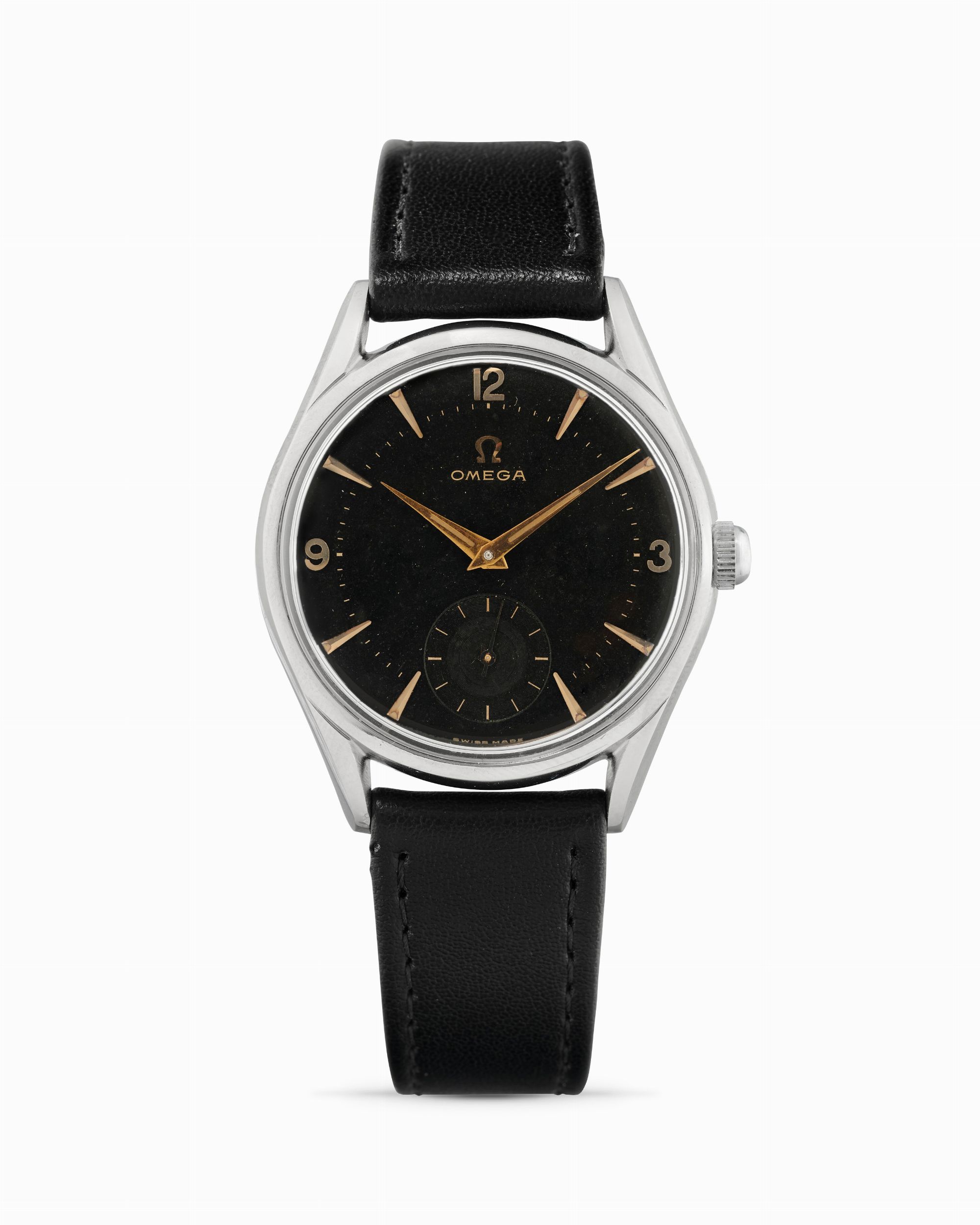 anni 60 Cassa rotonda in acciaio. Quadrante nero, indici e numeri arabi applicati. Movimento a carica manuale, cal.266, n.14565616. Cinturino in pelle. Dimensioni: 36 mm.