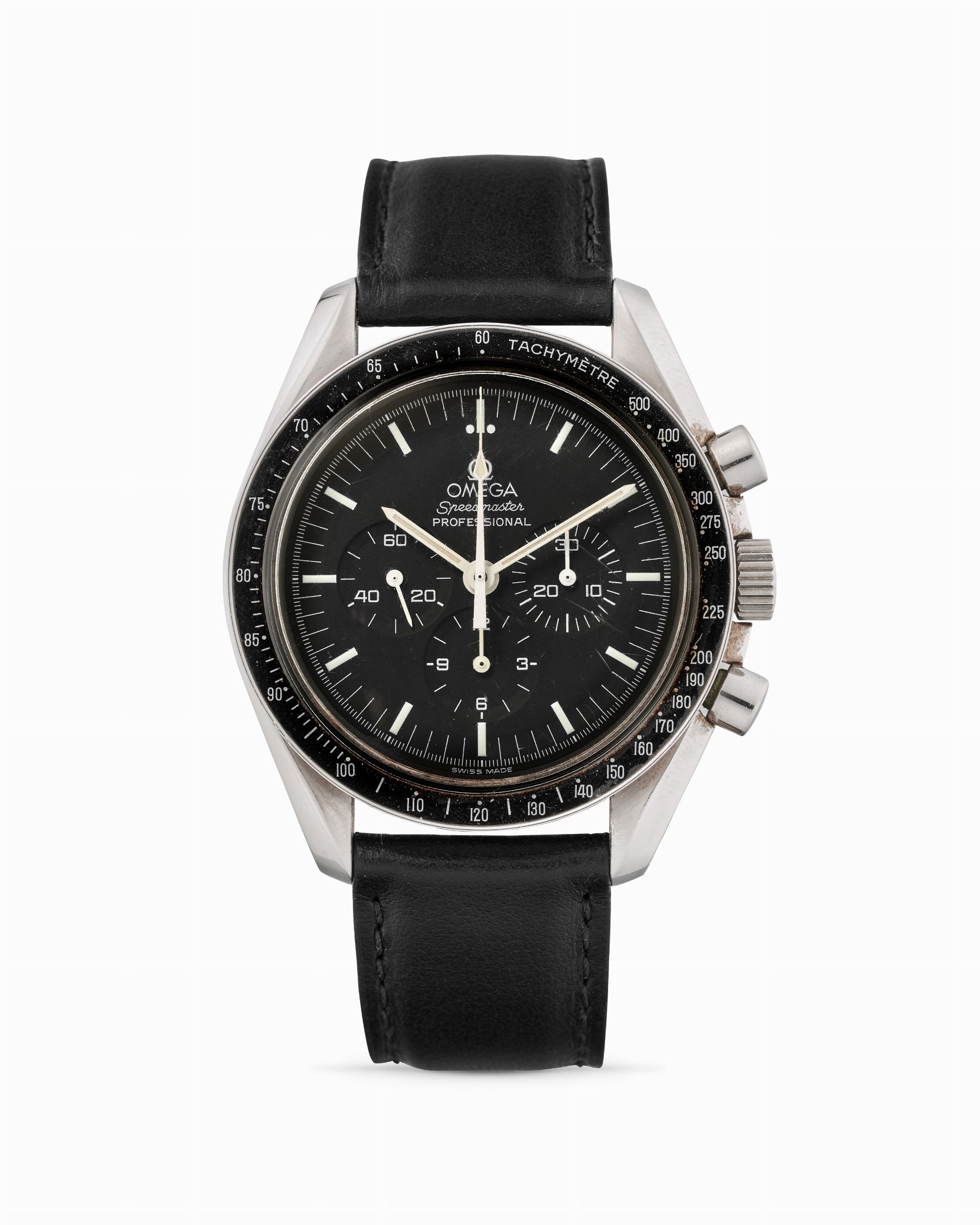 anni 90 Cassa rotonda in acciaio, fondello a vista, lunetta nera in alluminio, pulsanti tondi, anse a lira. Quadrante nero, indici luminescenti. Movimento a carica manuale, cal.1863, n.48403760. Cinturino in pelle. Dimensioni: 42 mm. Accompagnato da garanzia, libretti, targhetta, fibbia in acciaio e scatola Omega.