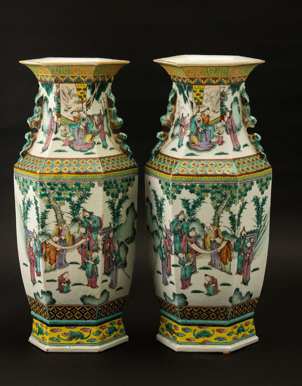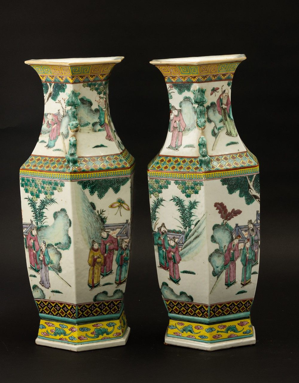 Coppia di grandi vasi Famiglia Rosa, a decoro di scene di vita comune, Cina, Dinastia [..]