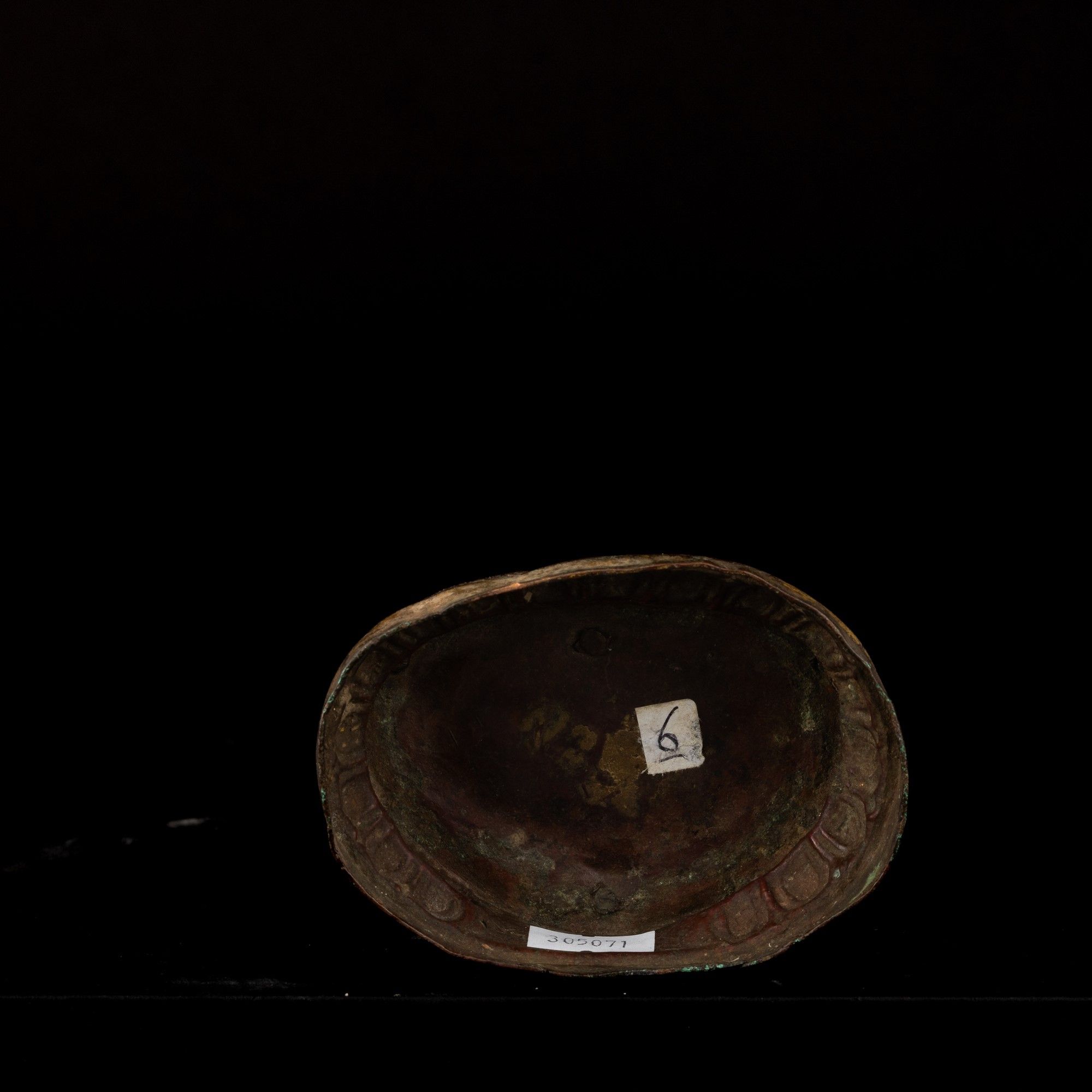Figura di Buddha Sakyamuni seduto su doppio fior di loto in rame repoussé, Tibet, [..]