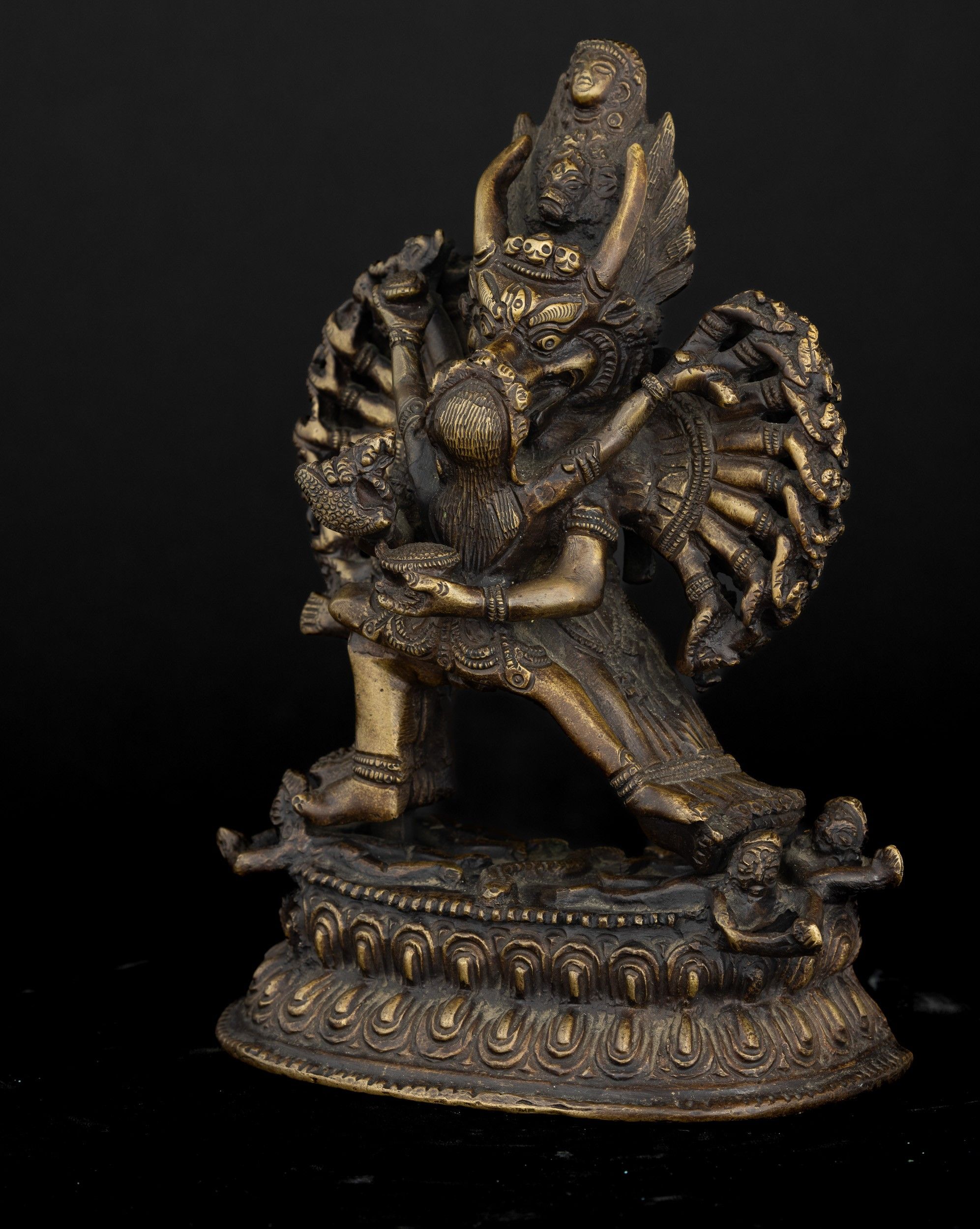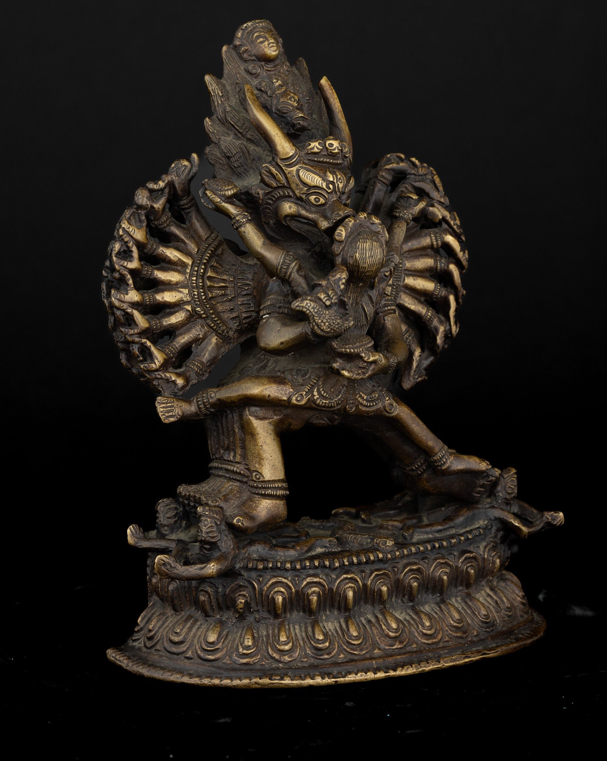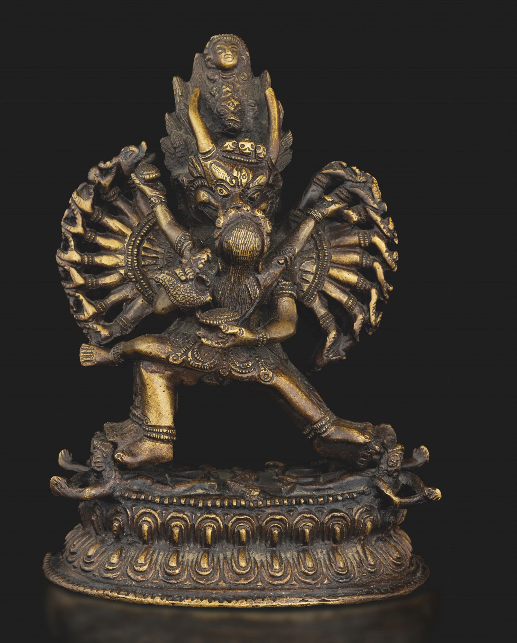 Figura di Yamantaka Vajra in bronzo su doppio fiore di loto, Tibet, XVIII - XIX [..]