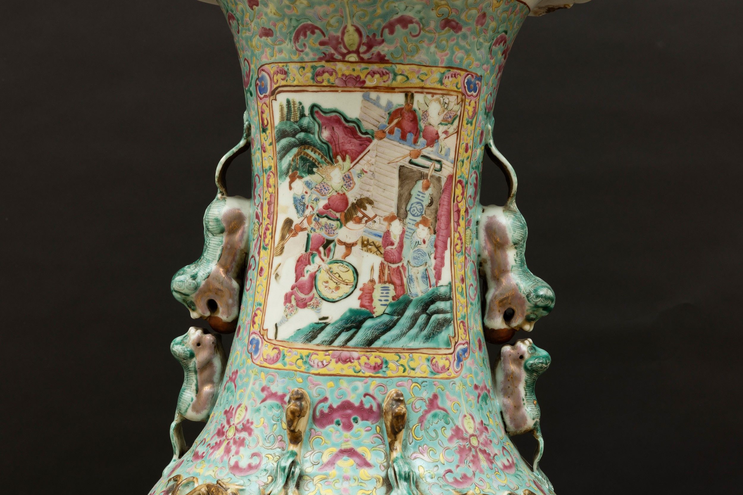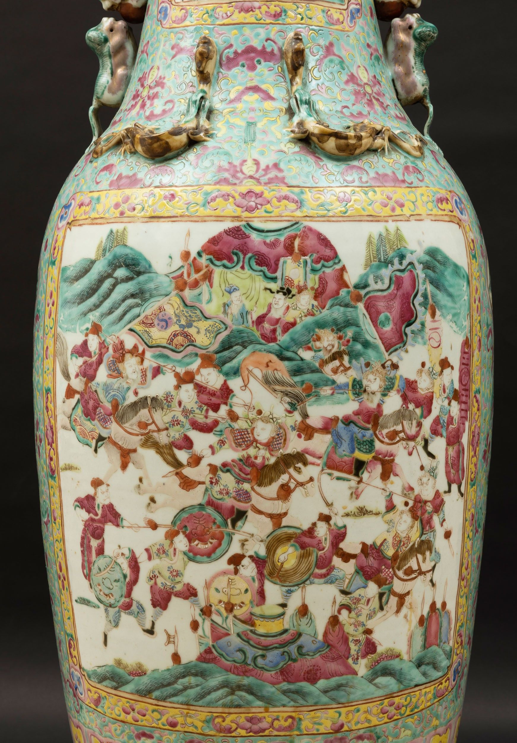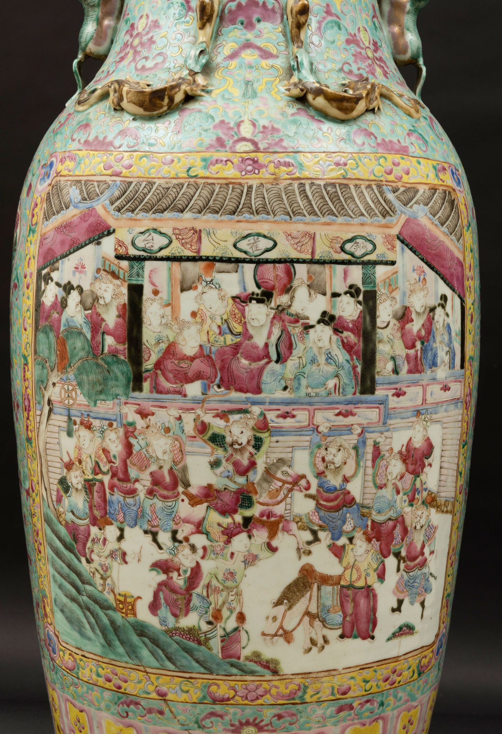 Grande vaso in porcellana a smalti policromi sui toni della Famiglia Rosa raffigurante [..]