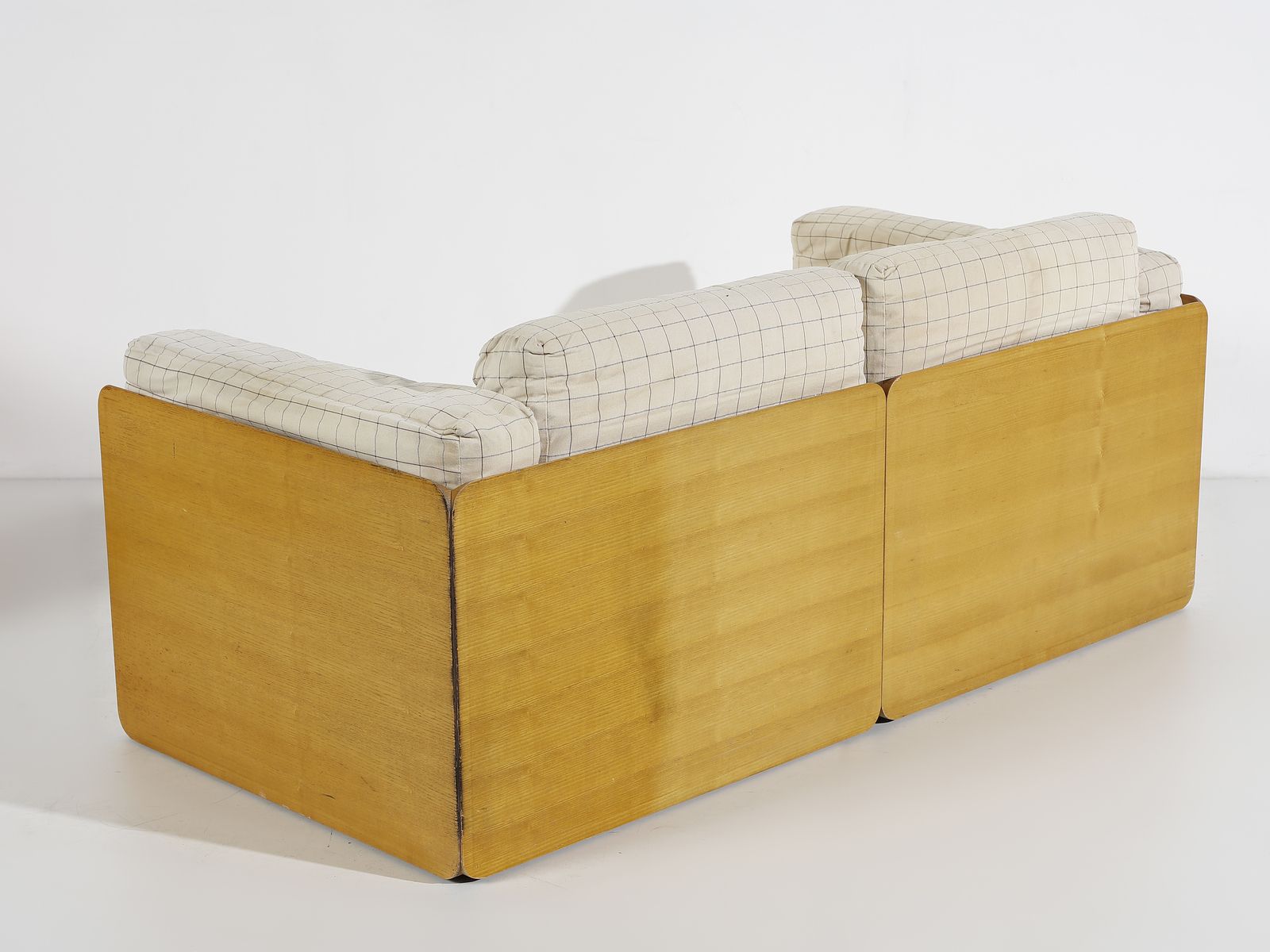 Anni Ottanta.Dimensioni: struttura divani 50 x 150 x 73 cm, tavolino 43 x 85 x 85 cm