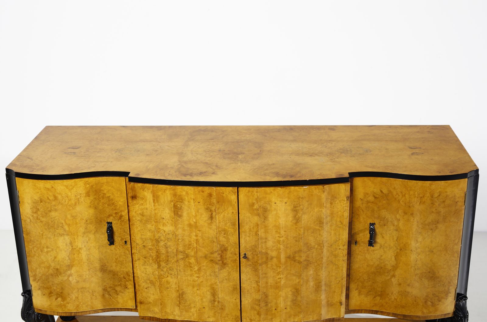 Credenza a quattro ante con fronte mosso e gambe mosse decorate a volute