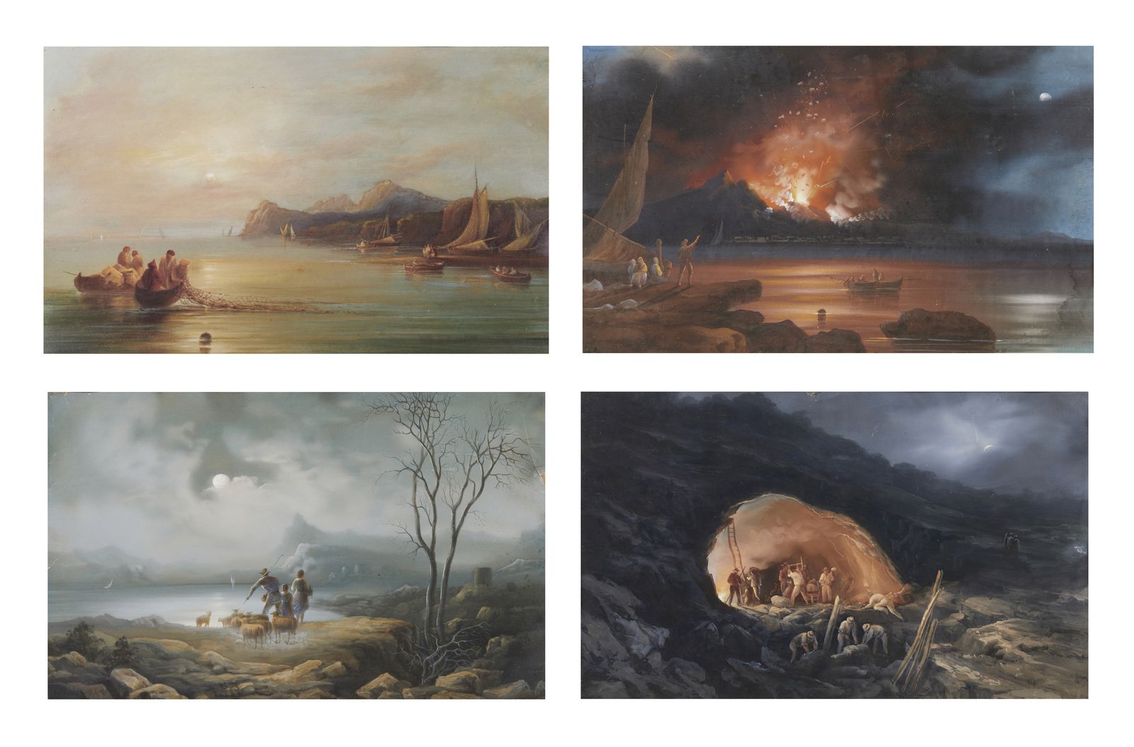 Gruppo di quattro dipinti raffiguranti vedute napoletane